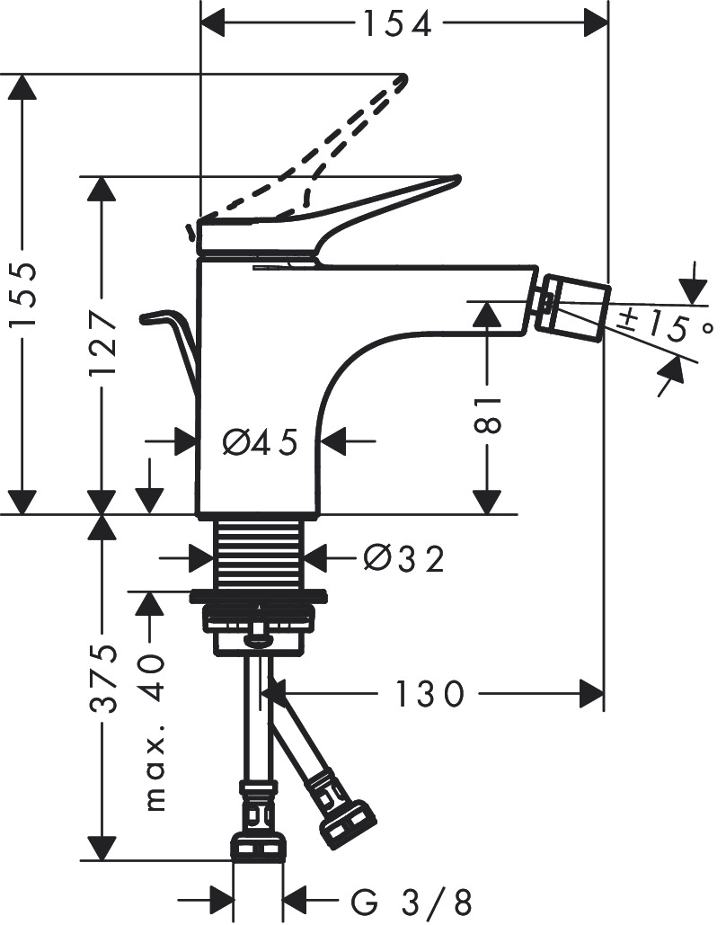 Baterie Hansgrohe VIVENIS bideu, cu ventil, MB