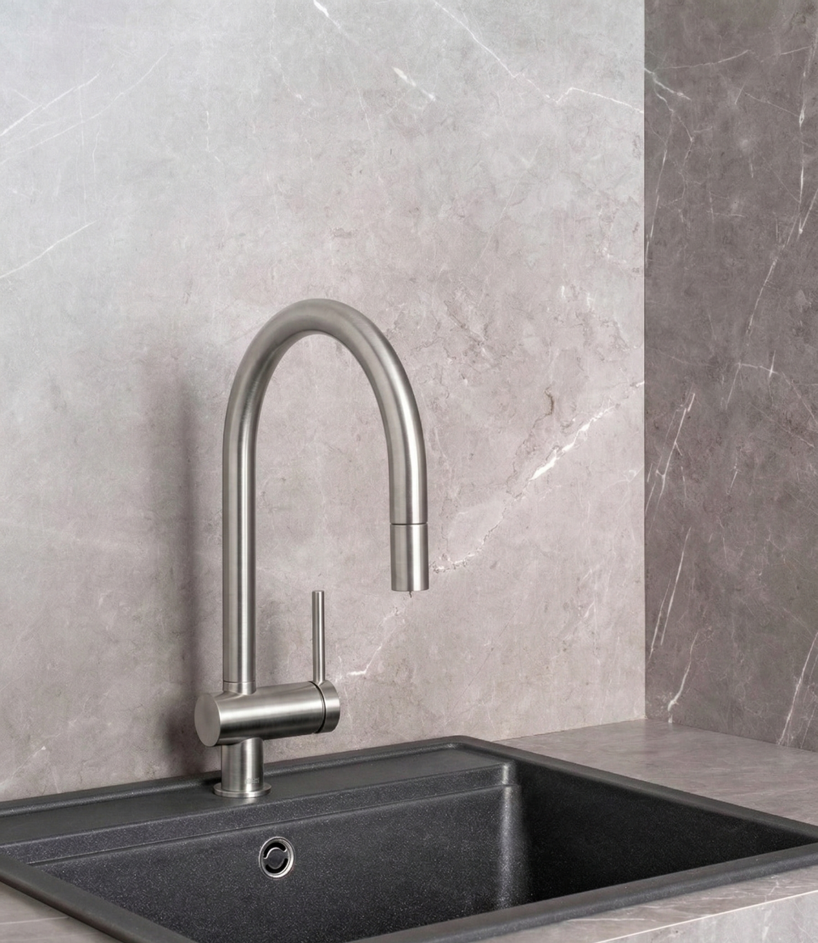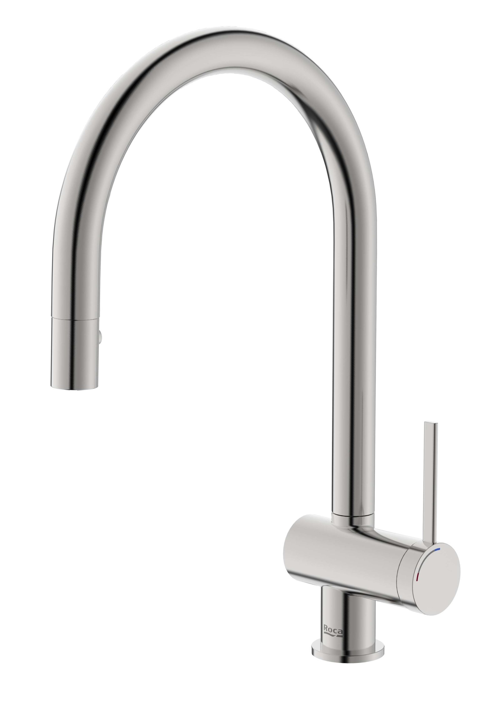 Bateria pentru bucătărie din colecția Ona îmbină estetica organică cu funcționalitatea avansată, fiind fabricată din oțel inoxidabil de înaltă calitate. Dotată cu o pipă înaltă și un duș extractibil cu două funcții de pulverizare, aceasta oferă o versatilitate maximă în utilizarea cotidiană, facilitând curățarea precisă a vaselor și a chiuvetei. Cartușul ceramic performant asigură un control lin al temperaturii, în timp ce poziționarea verticală a mânerului optimizează spațiul pe blat. Finisajul Everlux din inox conferă produsului o rezistență excepțională la coroziune, zgârieturi și amprente, menținând aspectul impecabil pe termen lung.