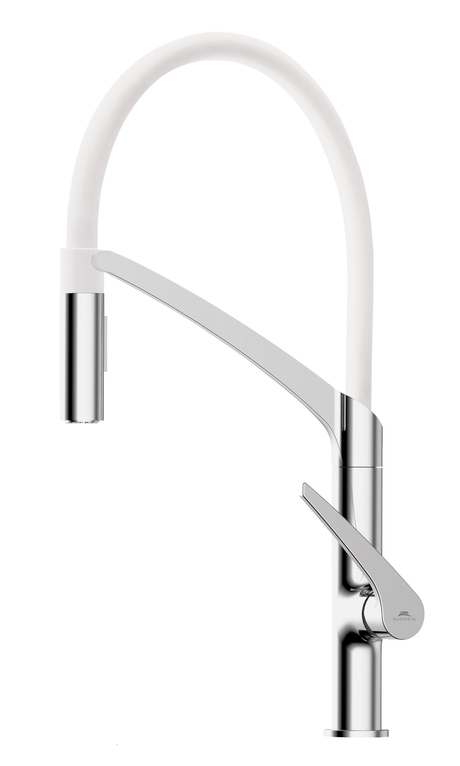 Bateria de bucătărie din colecția Ultima pe alb combină estetica modernă cu funcționalitatea unui echipament profesional, fiind ideală pentru bucătăriile contemporane cu un design luminos. Construcția cu arc flexibil exterior oferă o mobilitate excepțională, permițând direcționarea jetului de apă în orice punct al chiuvetei. Sistemul cu două tipuri de jet oferă versatilitate în utilizare, facilitând trecerea rapidă de la un flux constant pentru umplerea vaselor la o pulverizare de tip duș pentru curățarea eficientă a alimentelor. Finisajul alb de înaltă calitate este rezistent la pete și coroziune, menținând aspectul curat al produsului.