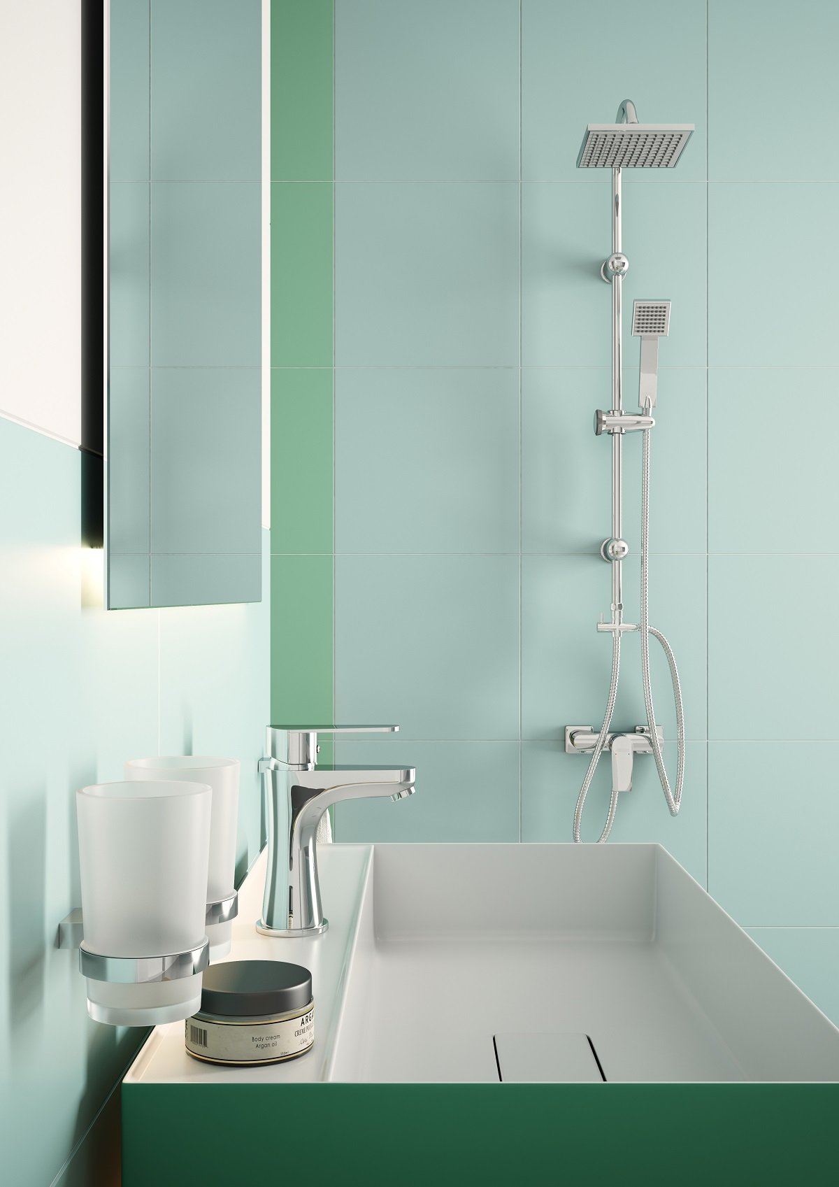 Bateria de duș monocomandă din colecția Ferro Square se remarcă printr-un design geometric modern, definit de linii drepte și unghiuri precise. Această estetică minimalistă este completată de o funcționalitate de înaltă precizie, oferind o soluție vizuală puternică pentru băile contemporane. Cartușul ceramic integrat asigură o funcționare lină a mânerului, permițând reglarea facilă a temperaturii și a debitului de apă. Finisajul cromat de calitate superioară nu doar protejează structura din alamă împotriva coroziunii, ci oferă și o strălucire de durată care se menține impecabilă în condiții de umiditate ridicată.