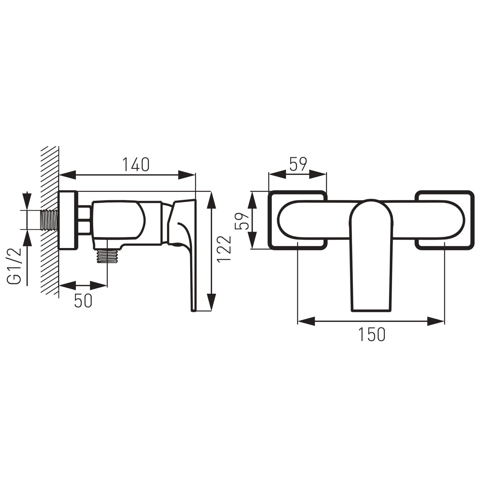 Compatibilitate și condiții de montare: proiectat pentru montaj pe perete; conexiuni standard S-unions cu distanța de 150±20 mm; racord furtun de duș G 1/2. Recomandări de îngrijire și siguranță: curățați cu o lavetă moale și detergenți neabrazivi; evitați produsele pe bază de clor sau acizi; după finalizarea montajului verificați etanșeitatea conexiunilor.