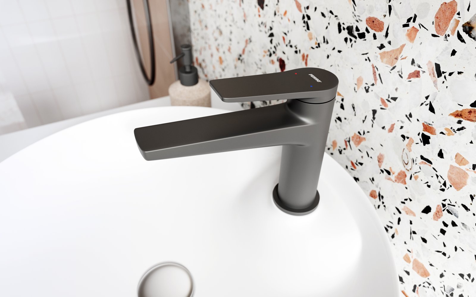 - design compact cu montare pe un singur orificiu, potrivit pentru lavoare de diverse dimensiuni