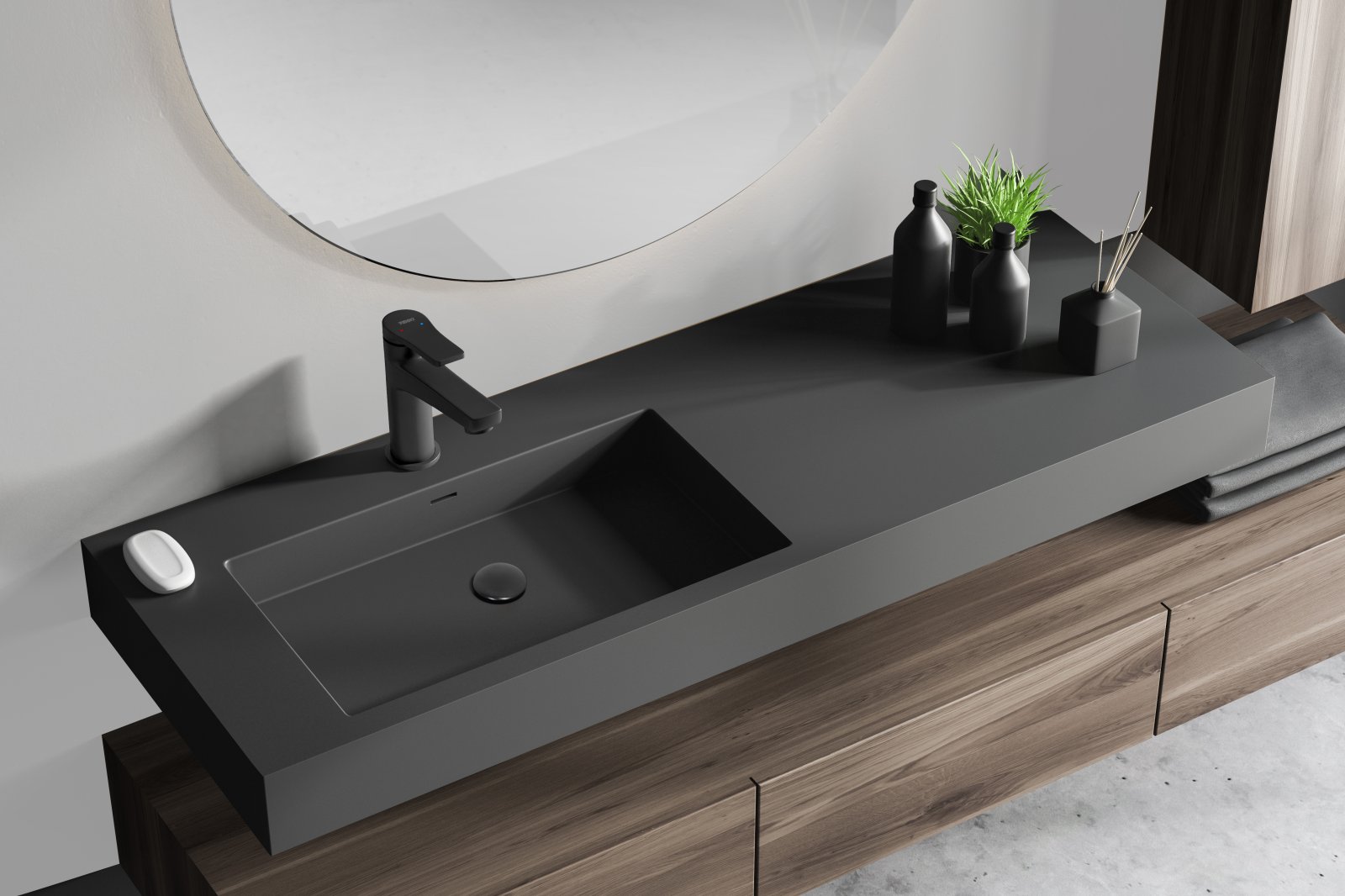 Bateria de lavoar monocomandă din colecția Stratos Black se remarcă printr-un design modern și linii geometrice bine definite, fiind ideală pentru băile amenajate în stil industrial sau minimalist. Finisajul negru mat oferă o estetică sobră și elegantă, având avantajul de a fi rezistent la amprente și pete de apă, ceea ce facilitează întreținerea zilnică. Corpul robust din alamă găzduiește un cartuș ceramic de 25 mm, care asigură o funcționare silențioasă și o reglare precisă a fluxului, transformând utilizarea bateriei într-o experiență plăcută și eficientă.
