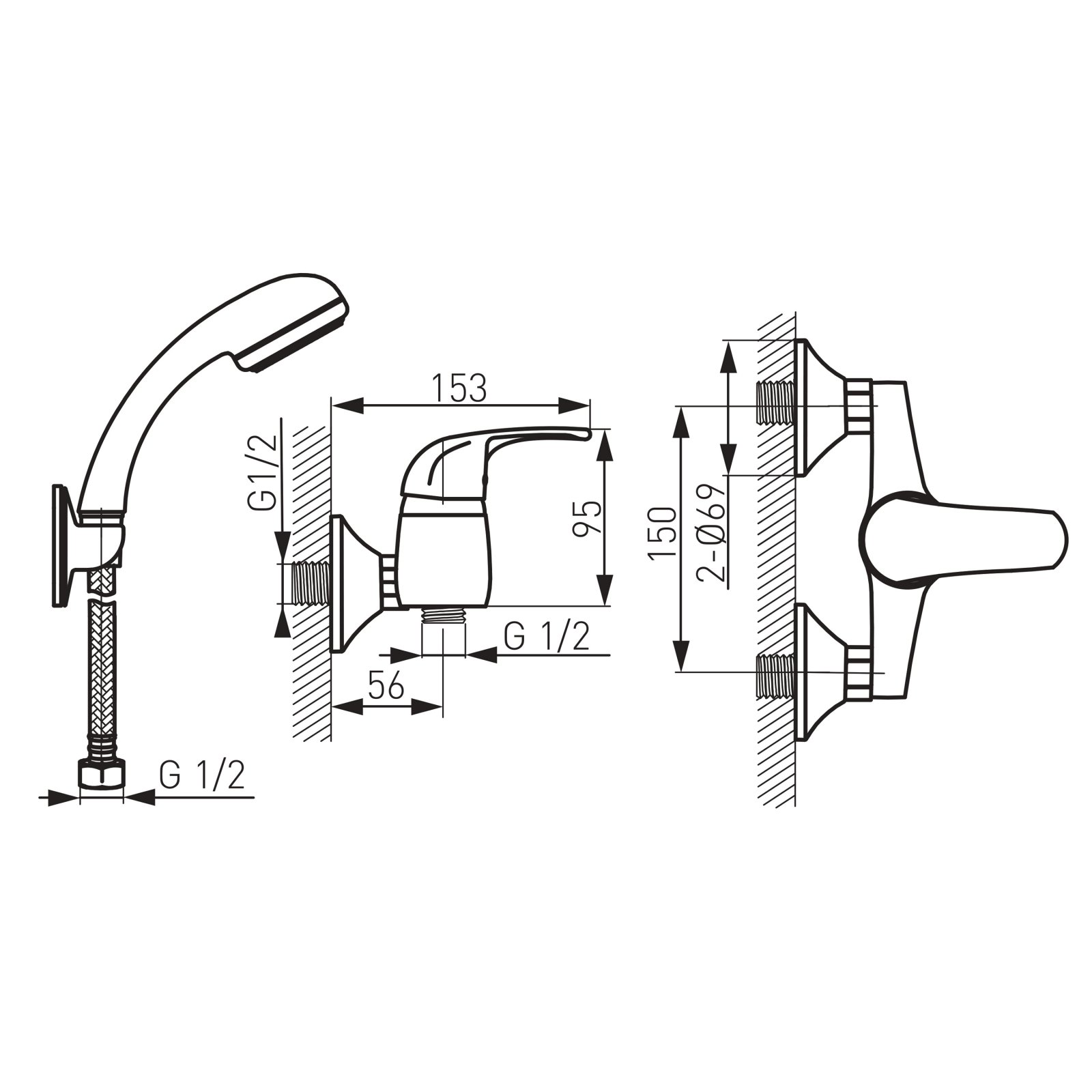 Compatibilitate și condiții de montare: proiectat pentru montaj pe perete; conexiuni standard S-unions cu distanța de 150±20 mm; racord furtun de duș G 1/2. Recomandări de îngrijire și siguranță: curățați cu produse neabrazive și o lavetă moale; evitați soluțiile pe bază de clor; după montaj verificați etanșeitatea tuturor conexiunilor.