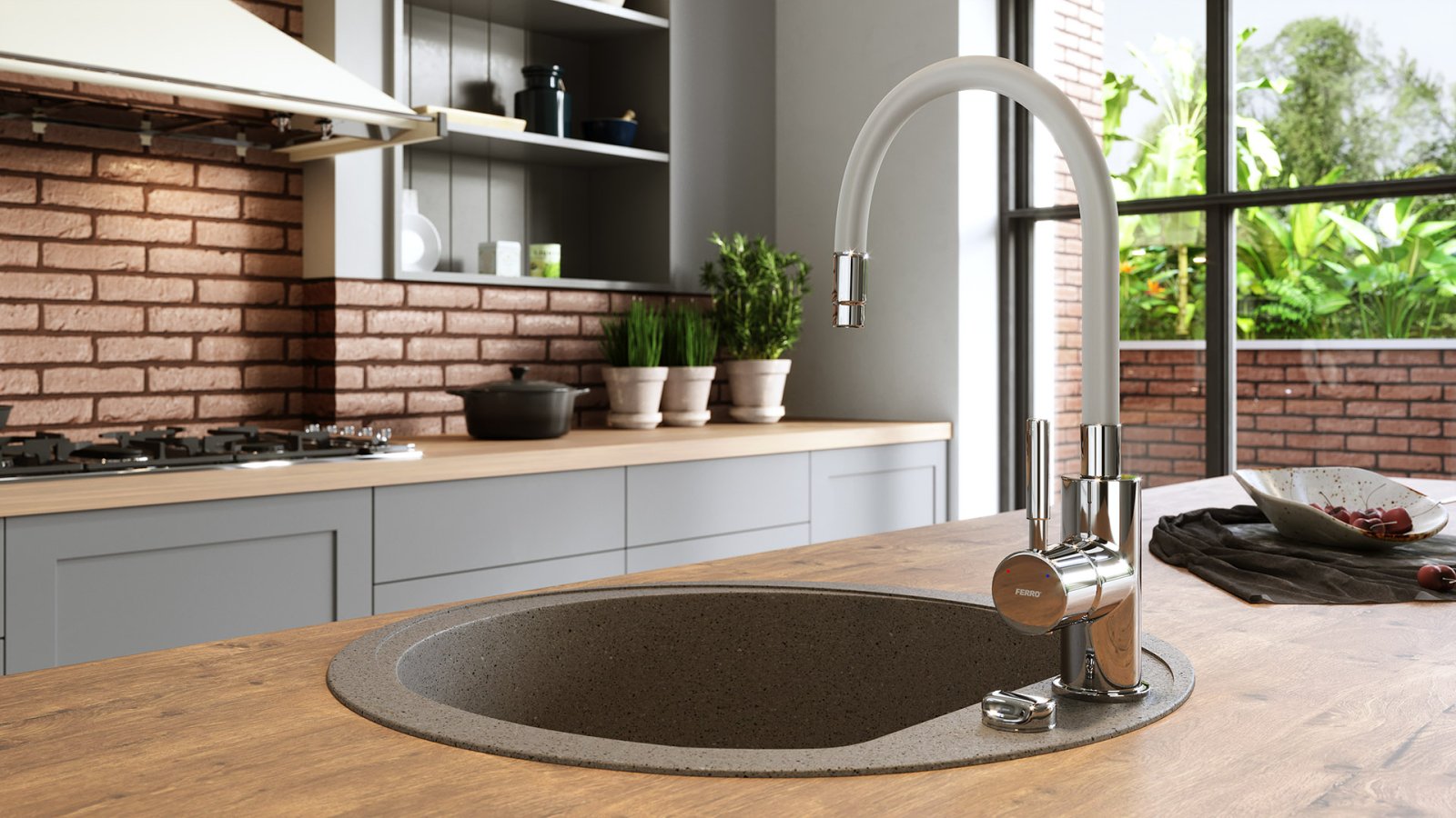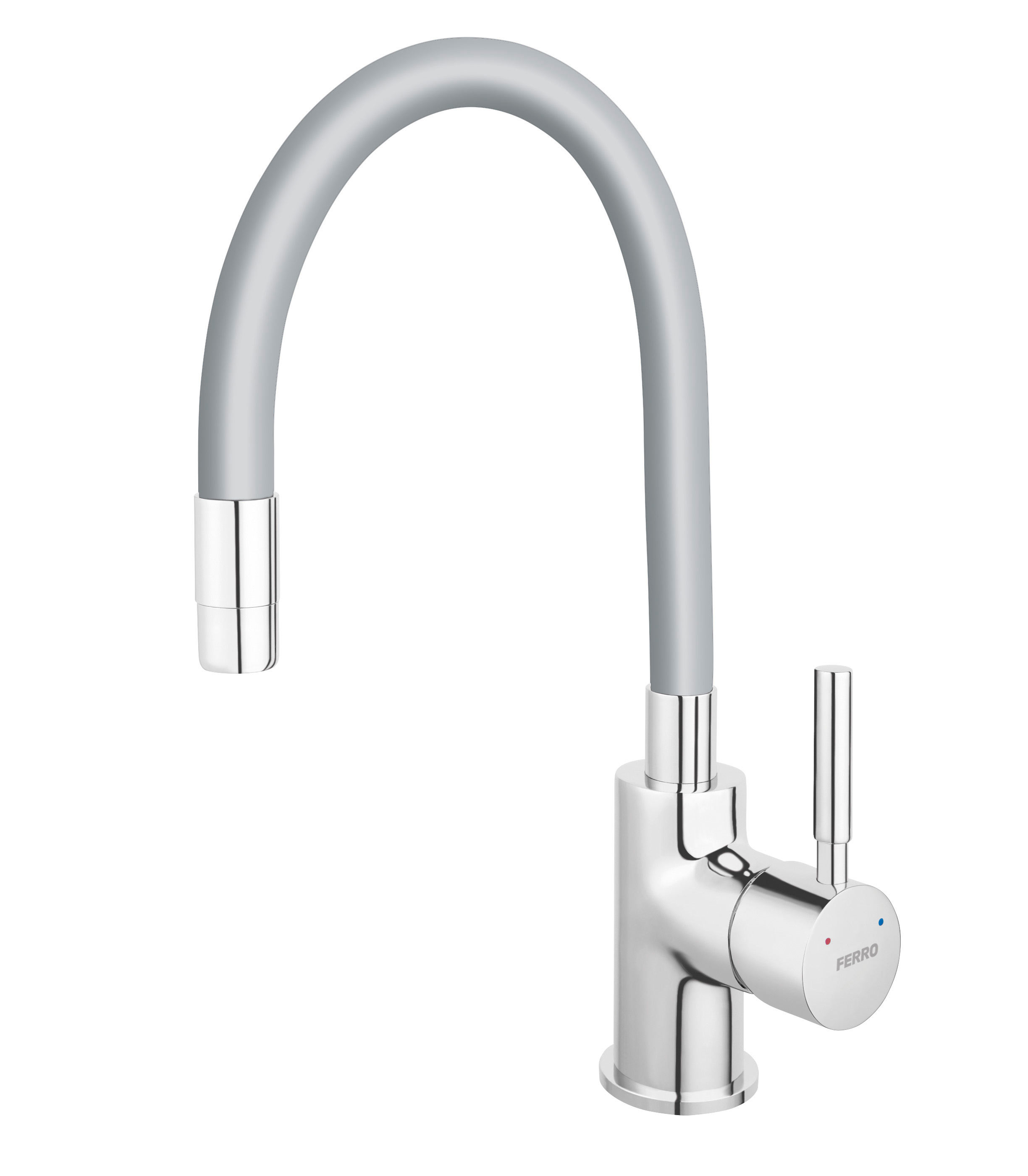 Baterie Ferro ZUMBA BZA4S bucatarie, pipa elastica, crom/gri