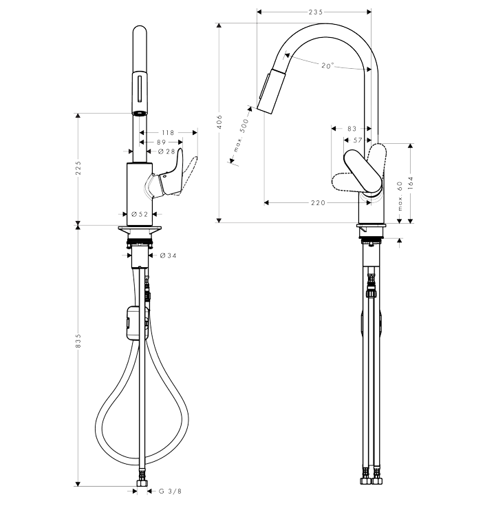 Baterie Hansgrohe FOCUS M41 bucatarie (dus extractibil), MB