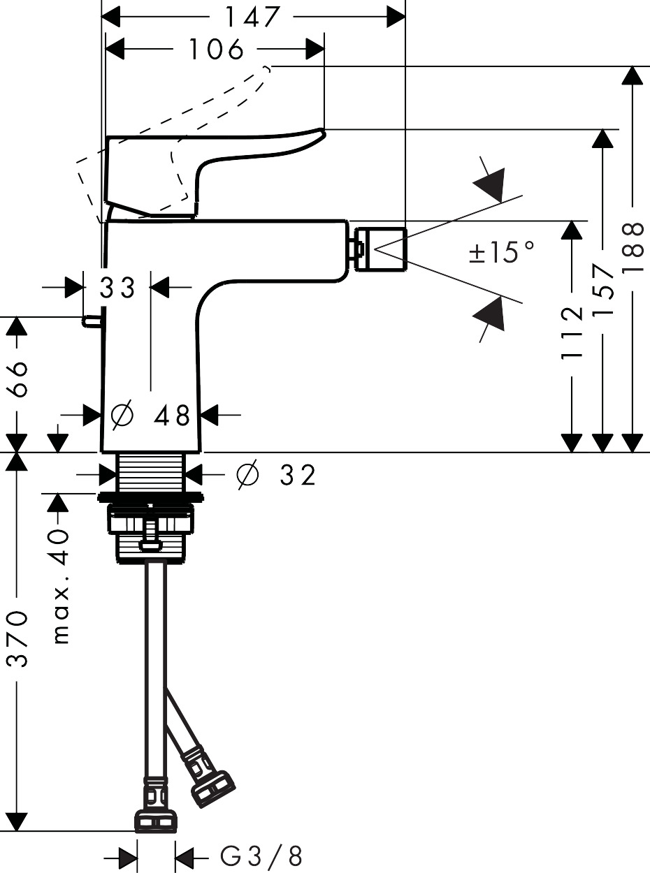 Compatibilitate și condiții de montare: destinat montajului pe bideu cu un singur orificiu; include racorduri flexibile de conectare G 3/8; presiune de lucru recomandată 1-5 bar. Recomandări de îngrijire și siguranță: curățați finisajul cu o cârpă moale și detergenți neutri; clătiți bine după utilizarea substanțelor de curățare; verificați periodic starea racordurilor pentru a asigura etanșeitatea.