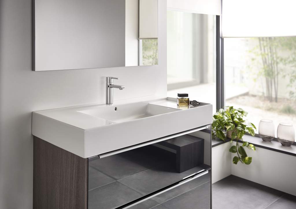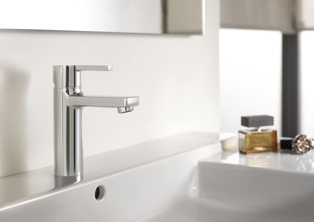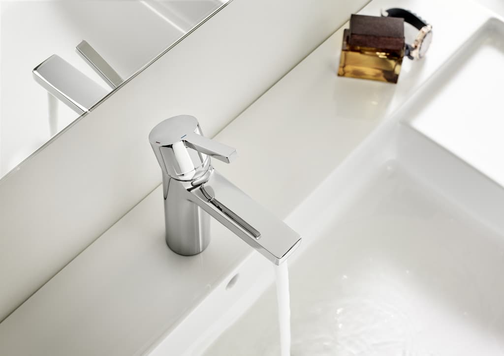Bateria de lavoar de mărime medie din colecția Naia de la Roca reprezintă un echilibru perfect între formele geometrice cilindrice și pătrate, oferind un aspect minimalist și sofisticat. Înălțimea medie a pipei asigură un confort sporit în utilizare, facilitând activitățile zilnice de igienă prin spațiul optim creat deasupra lavoarului. Tehnologia SoftTurn garantează o manevrare lină a pârghiei pentru o reglare precisă a temperaturii, în timp ce finisajul cromat de înaltă calitate asigură o strălucire de durată și o rezistență ridicată la coroziune.