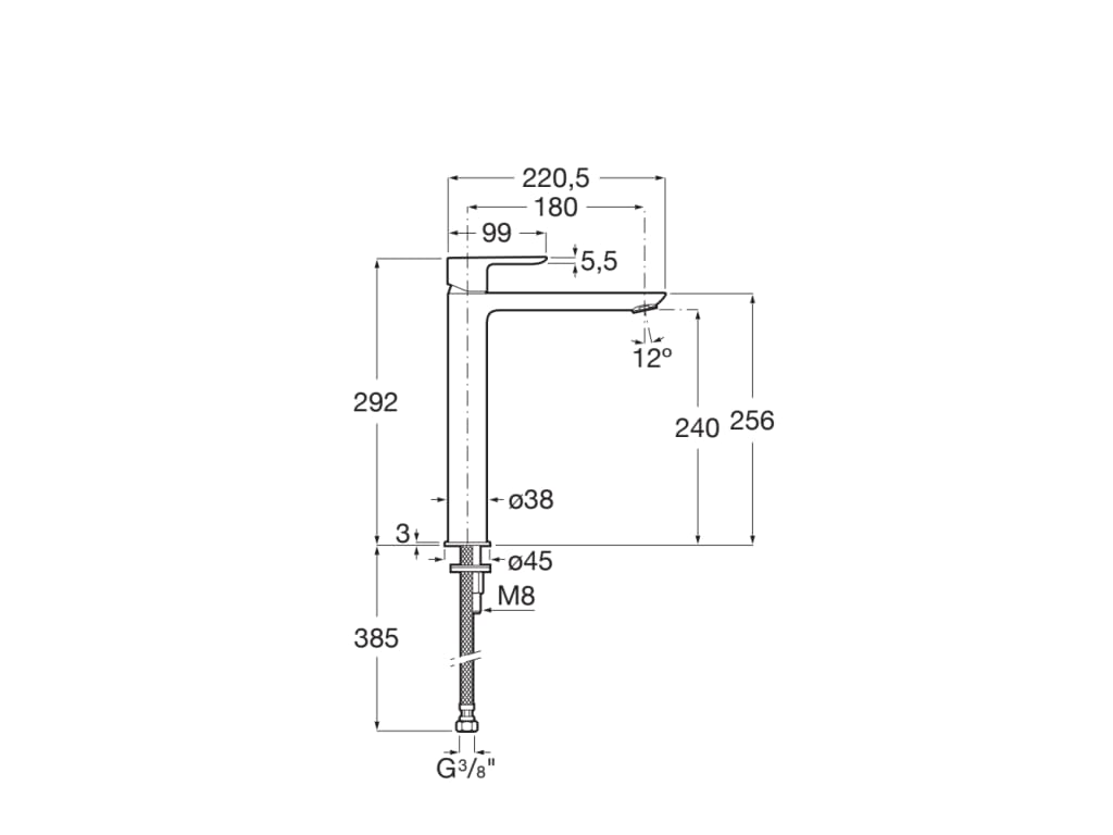 Compatibilitate și condiții de montare: destinat instalării pe blat sau lavoar înalt; conexiuni flexibile de alimentare 3/8 incluse. Recomandări de îngrijire și siguranță: curățați cu o lavetă moale și apă cu săpun neutru; evitați agenții de curățare corozivi sau bureții abrazivi; verificați etanșeitatea sistemului după finalizarea montajului.