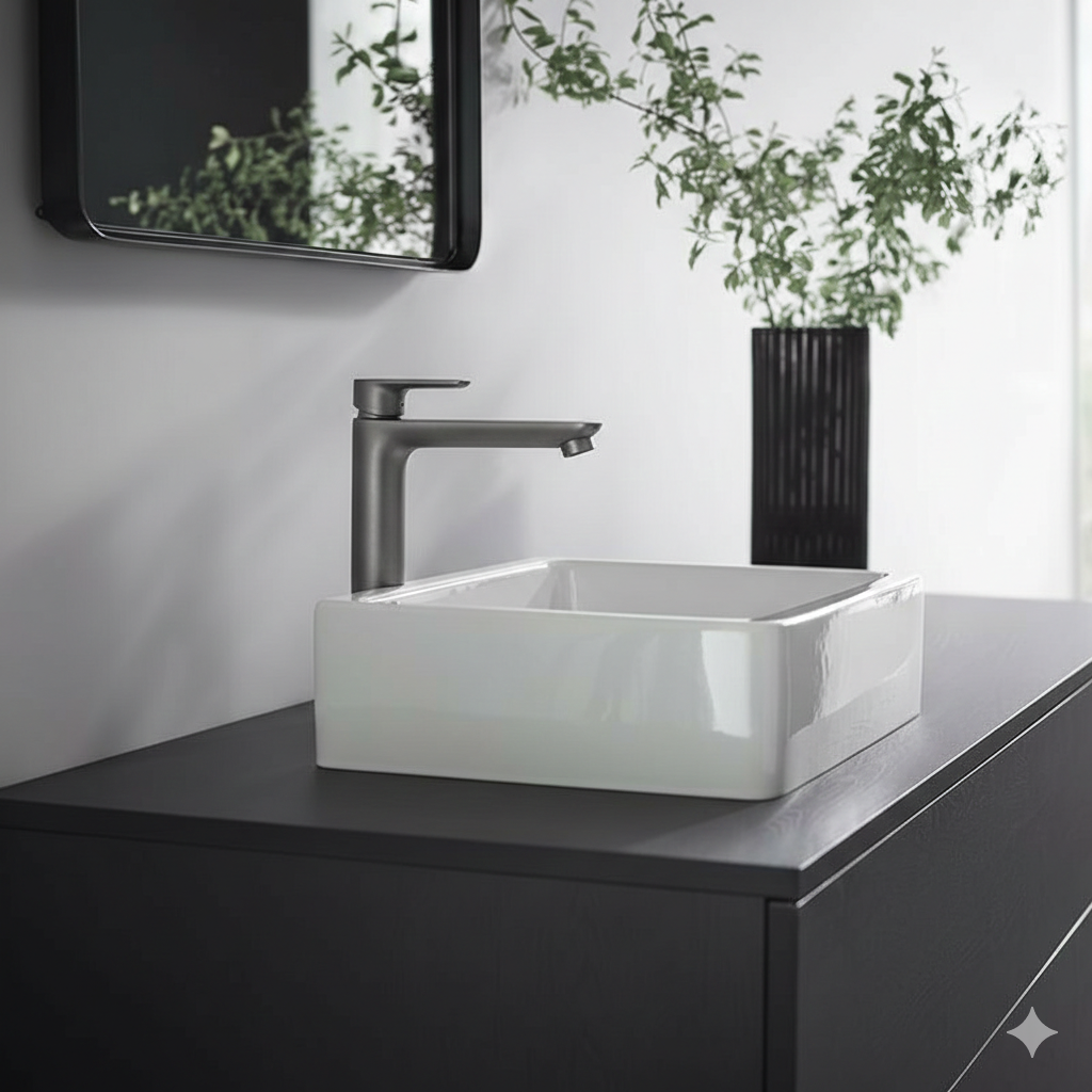 Bateria de lavoar înaltă din colecția Talis E este proiectată special pentru a completa estetica lavoarelor tip bol, oferind o prezență impunătoare și elegantă. Designul său modern, definit prin linii precise și suprafețe ample, este pus în valoare de finisajul exclusivist Brushed Black Chrome, care adaugă un contrast sofisticat în orice baie contemporană. Tehnologia ComfortZone 240 asigură o libertate de mișcare excepțională, facilitând utilizarea zilnică fără a stropi suprafețele din jur. Datorită sistemului EcoSmart, consumul de apă este redus semnificativ, în timp ce tehnologia AirPower garantează un jet plin și catifelat, infuzat cu aer.