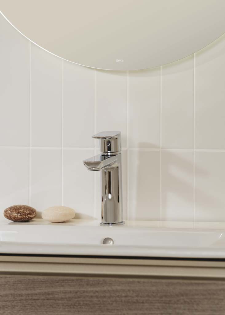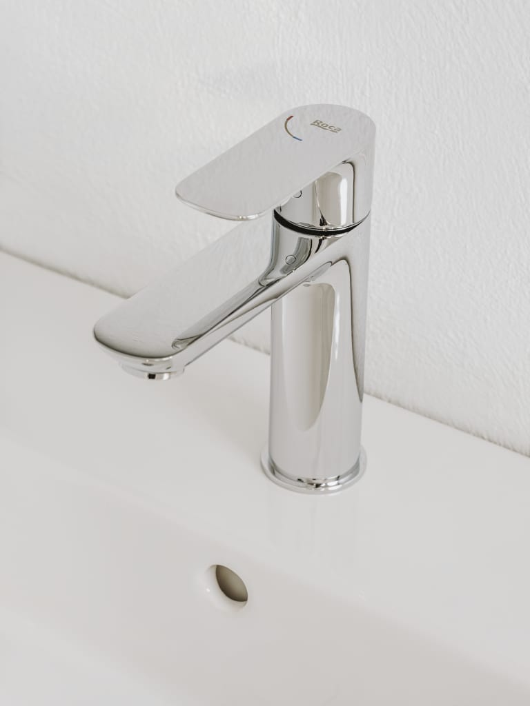 Bateria medie de lavoar din colecția Cala, dimensiune M, este concepută pentru a oferi un echilibru perfect între ergonomie și stil în băile contemporane. Corpul cilindric subțire de 38 mm se armonizează cu pipa plată, creând o estetică pură și minimalistă. Inovația principală este tehnologia Cold Start, care permite pornirea implicită pe apă rece, evitând activarea inutilă a centralei și reducând consumul de energie. Înălțimea medie a pipei oferă un spațiu confortabil pentru spălarea mâinilor, fiind potrivită pentru lavoare de dimensiuni standard sau medii.