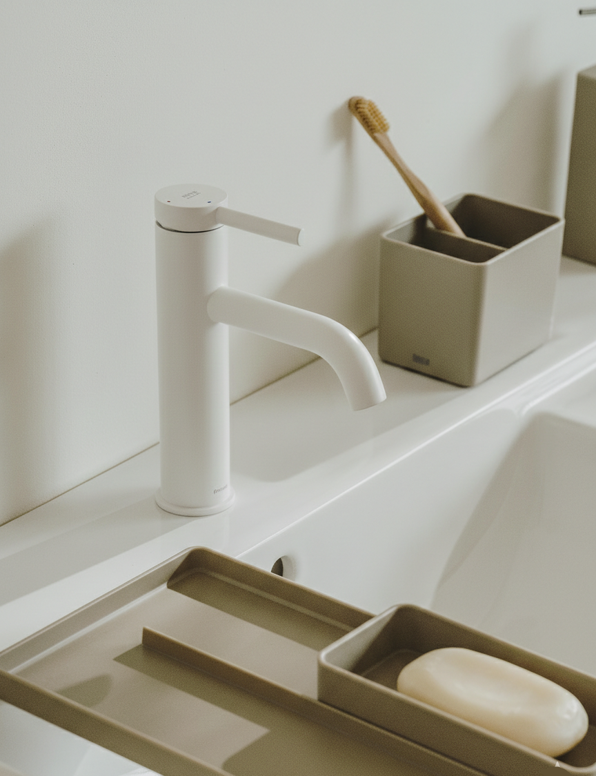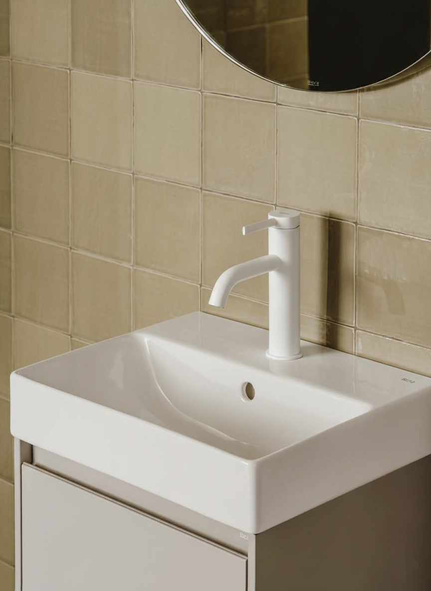 Bateria pentru lavoar din colecția Ona surprinde prin simplitatea sa organică și funcționalitatea avansată, fiind inspirată de formele naturale ale Mediteranei. Designul său cilindric subțire, completat de o pârghie plată, oferă o ergonomie excelentă și o estetică modernă. Tehnologia Cold Start integrată previne pornirea accidentală a apei calde, contribuind la economisirea energiei. Finisajul alb mat conferă produsului o textură catifelată și o rezistență deosebită la petele de apă, menținând aspectul curat pentru o perioadă lungă.