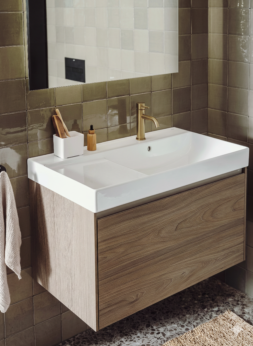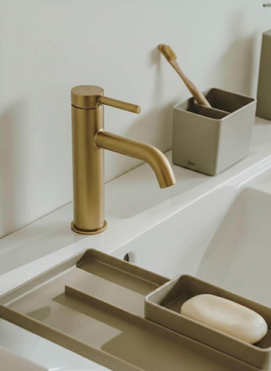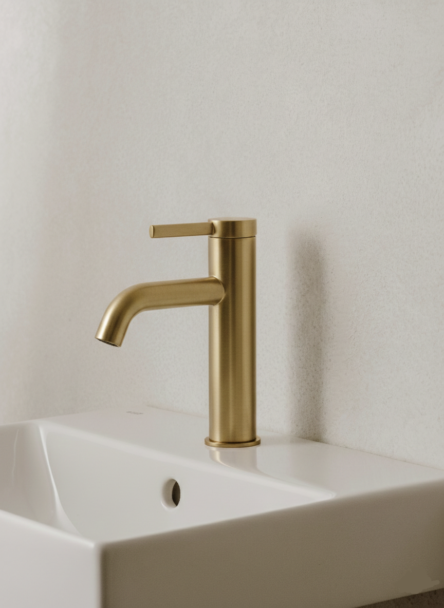 Bateria de lavoar din colecția Ona, finisată în nuanța exclusivistă Aur Periat, reprezintă o fuziune perfectă între tehnologia modernă și designul inspirat de natură. Forma sa cilindrică și maneta subțire oferă o estetică minimalistă, în timp ce finisajul mat auriu adaugă o notă de lux cald oricărei băi. Tehnologia Cold Start integrată asigură o eficiență energetică superioară, permițând pornirea implicită pe apă rece. Învelișul Everlux, realizat prin procesul PVD, garantează o rezistență excepțională la zgârieturi și păstrează intensitatea culorii pe termen lung.