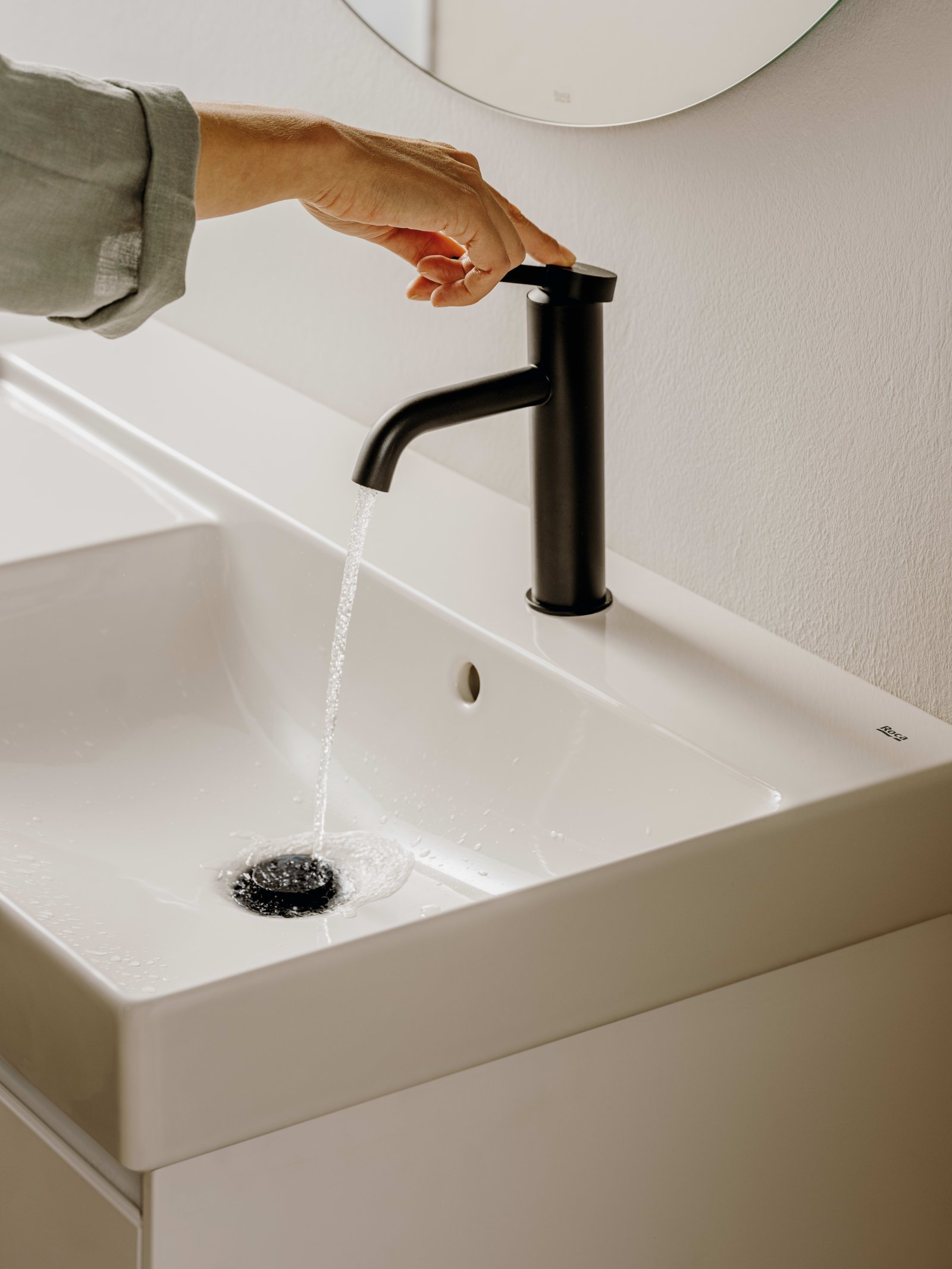 Bateria pentru lavoar din colecția Ona reflectă un design inspirat de simplitatea naturii, oferind o soluție estetică și funcțională pentru spațiile sanitare contemporane. Tehnologia Cold Start integrată asigură o eficiență energetică optimă prin evitarea activării accidentale a apei calde. Finisajul negru mat adaugă un accent vizual puternic și modern, fiind în același timp extrem de rezistent la amprente și coroziune. Cartușul ceramic garantează o manevrare precisă a pârghiei, asigurând un control fluid al fluxului de apă pe termen lung.