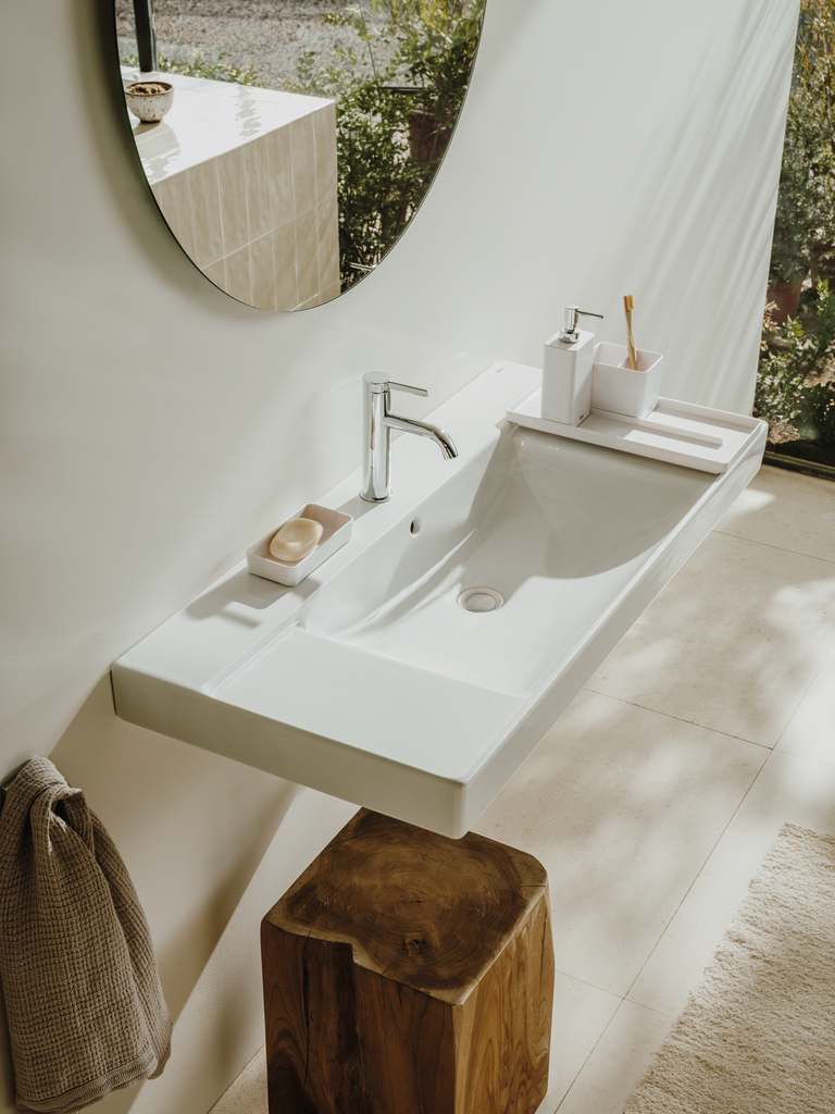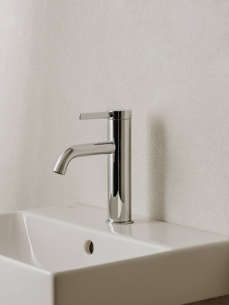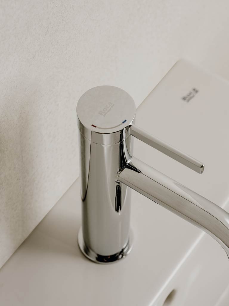 Bateria de lavoar de înălțime medie din colecția Ona reflectă un design inspirat de formele organice ale naturii, oferind un echilibru perfect între estetică și eficiență. Dimensiunea medie a corpului o face extrem de versatilă, fiind potrivită pentru o gamă largă de lavoare standard sau încastrate. Tehnologia de pornire la rece (Cold Start) previne consumul inutil de energie, oferind apă rece la deschiderea centrală a manetei. Finisajul cromat Evershine garantează o strălucire de durată și o curățare facilă, protejând suprafața împotriva coroziunii.