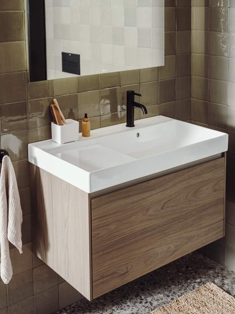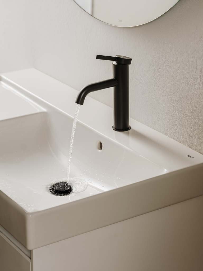 Bateria de lavoar de înălțime medie din colecția Ona reprezintă echilibrul perfect între estetica inspirată de natură și tehnologia modernă. Designul său cilindric zvelt, completat de un mâner dreptunghiular plat, se integrează ideal în băile contemporane. Dotată cu sistemul Cold Start, bateria pornește implicit pe apă rece, prevenind activarea inutilă a boilerului și reducând consumul de energie. Finisajul Titanium Black oferă o strălucire sofisticată și o rezistență sporită la coroziune datorită stratului EverShine.