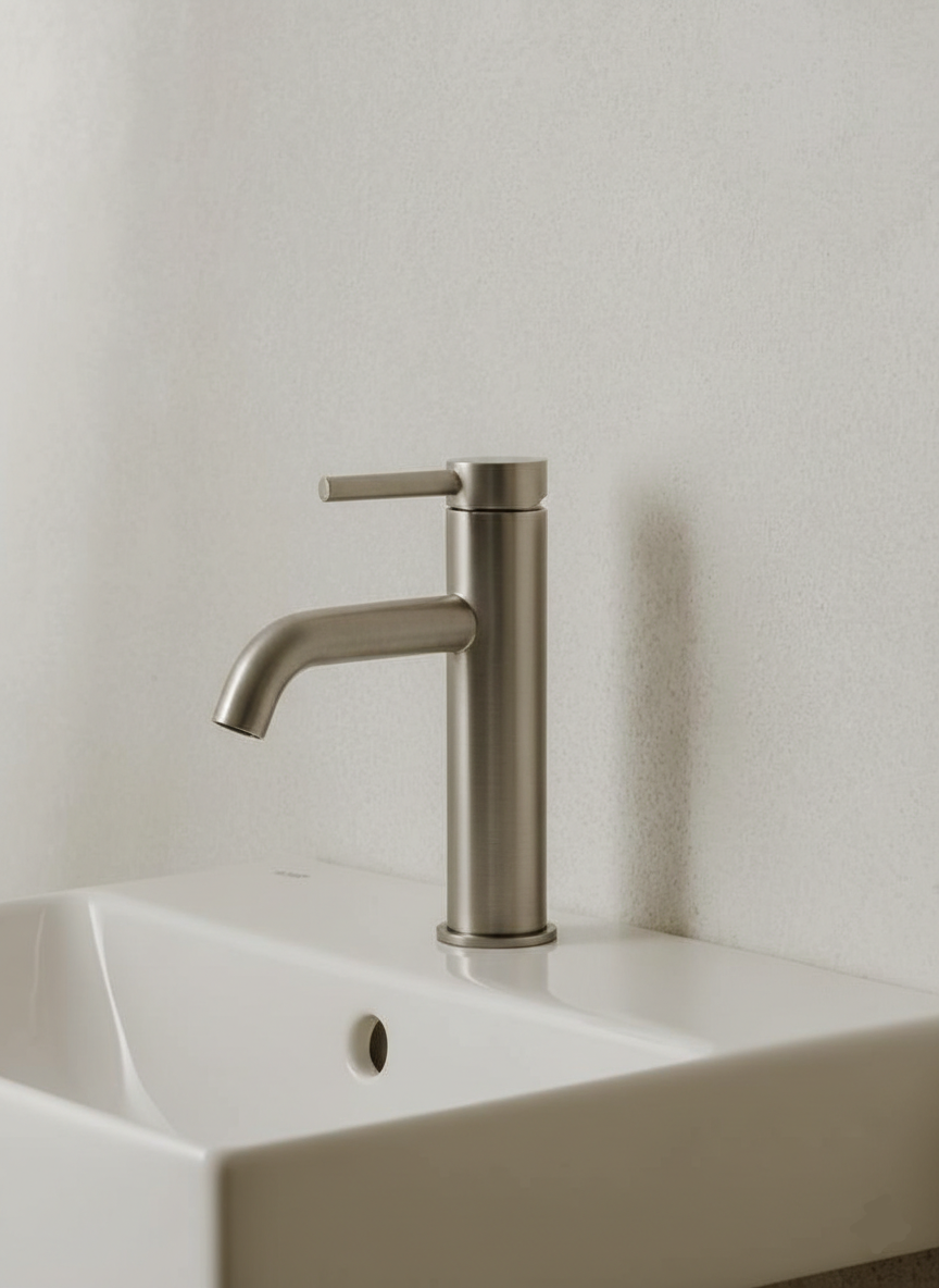 Bateria medie de lavoar din colecția Ona reflectă un design inspirat de formele organice ale naturii, oferind un echilibru perfect între estetică și funcționalitate. Finisajul Inox conferă o textură mată rafinată, fiind extrem de rezistent la amprente și la coroziune, integrându-se ideal în băile moderne. Tehnologia Cold Start asigură pornirea implicită pe apă rece, optimizând consumul de energie prin evitarea activării accidentale a sistemului de încălzire. Înălțimea medie a pipei facilitează o utilizare ergonomică, oferind un spațiu generos pentru activitățile zilnice de igienă.