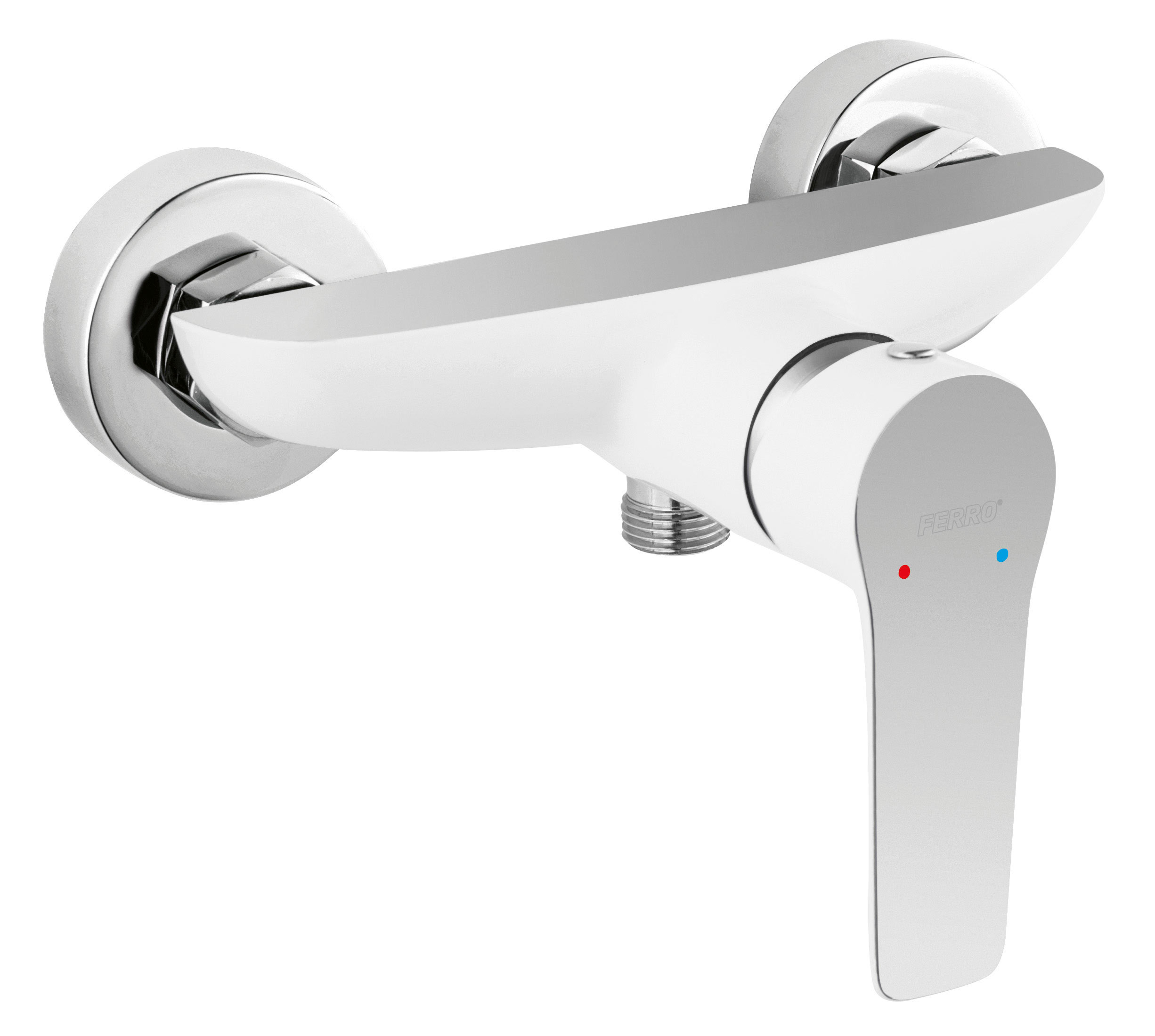 Bateria de duș monocomandă din colecția Ferro Adore se remarcă printr-un contrast vizual modern, combinând finisajul alb imaculat cu accente cromate rafinate. Designul său contemporan, cu linii rotunjite și suprafețe netede, aduce un plus de stil băilor moderne, oferind în același timp o funcționalitate impecabilă. Cartușul ceramic de înaltă performanță asigură un control lin și precis al temperaturii și debitului de apă, garantând o utilizare confortabilă pe termen lung. Corpul robust din alamă sanitară și stratul decorativ rezistent protejează bateria împotriva coroziunii și mențin aspectul estetic chiar și în condiții de umiditate constantă.