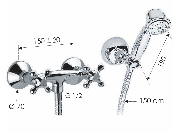 Compatibilitate și condiții de montare: proiectat pentru montaj pe perete; conexiuni standard S-unions cu distanța de 150±20 mm; racord furtun de duș G 1/2. Recomandări de îngrijire și siguranță: curățați suprafața cu o cârpă moale și produse neabrazive; evitați compușii pe bază de clor; după instalare verificați etanșeitatea conexiunilor sub presiune.