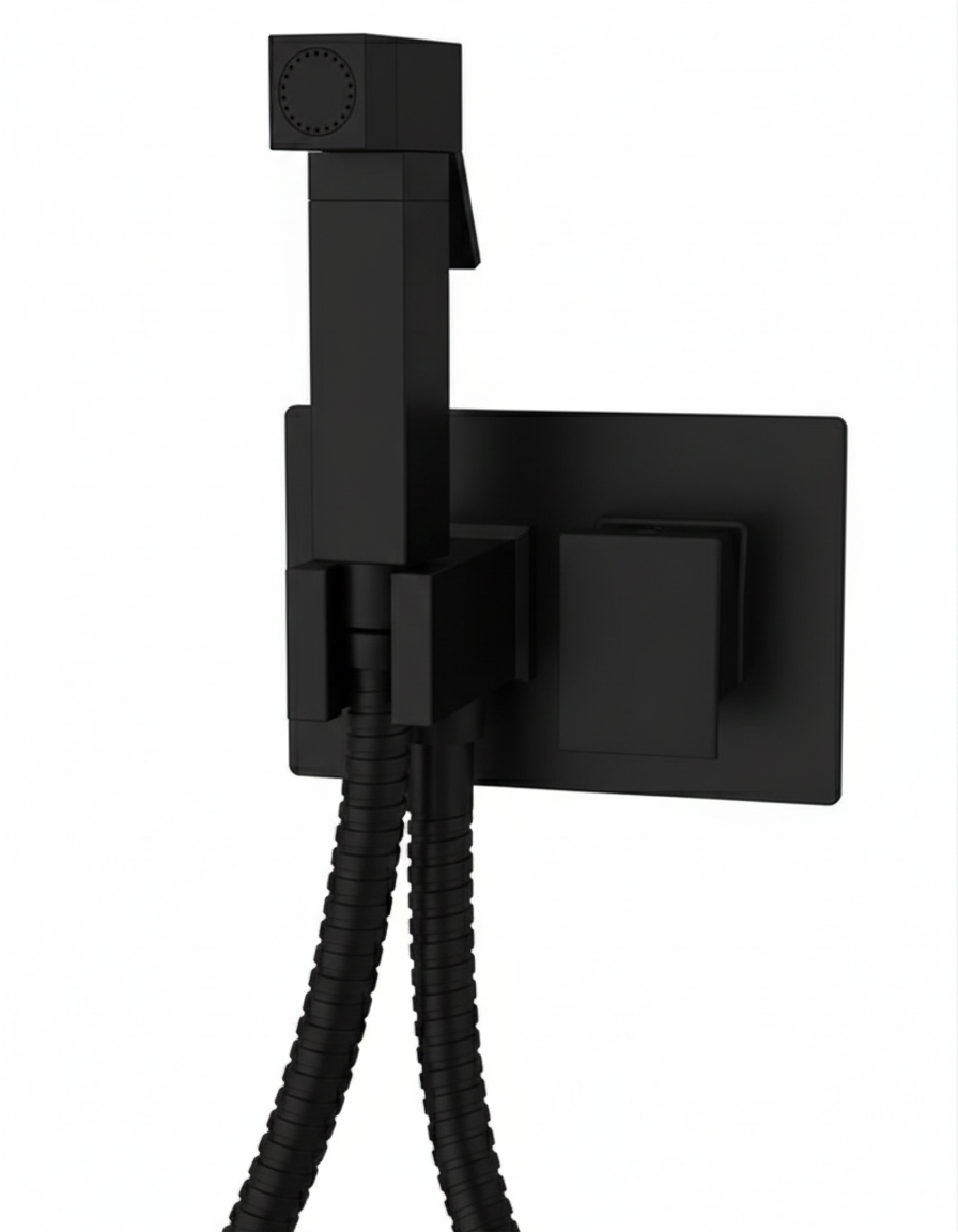 Bateria de duș igienic încastrată din colecția Skyline, montată pe placă, reprezintă o fuziune între estetica modernă și eficiența ergonomică. Finisajul negru mat oferă un contrast vizual puternic, fiind ideal pentru interioarele contemporane care pun accent pe detalii rafinate. Sistemul este echipat cu un mâner de control precis și o pară de duș cu buton tip shut-off, facilitând o utilizare intuitivă și igienică. Montajul pe placă unitară nu doar că protejează suprafața peretelui, dar oferă și un aspect ordonat, mascând conexiunile interne și eliberând spațiul din zona vasului de toaletă.