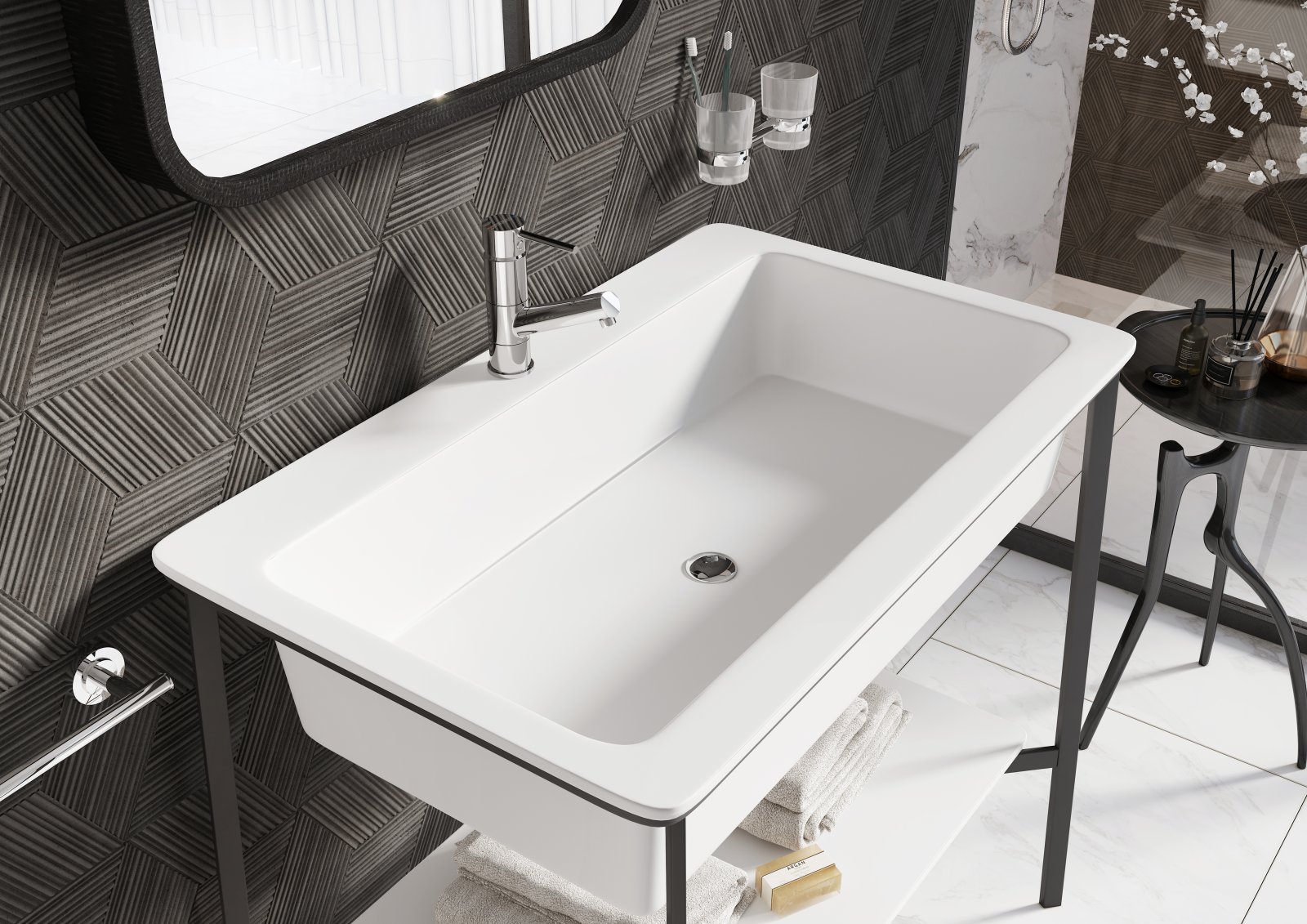 Compatibilitate și condiții de montare: proiectată pentru montaj stativ pe lavoar; setul include racordurile flexibile de alimentare G 3/8 - M10x1. Recomandări de îngrijire și siguranță: curățați periodic suprafața cu o cârpă moale și soluții neabrazive pentru a proteja stratul de crom; evitați utilizarea agenților chimici agresivi; după instalare verificați etanșeitatea sistemului sub presiune.