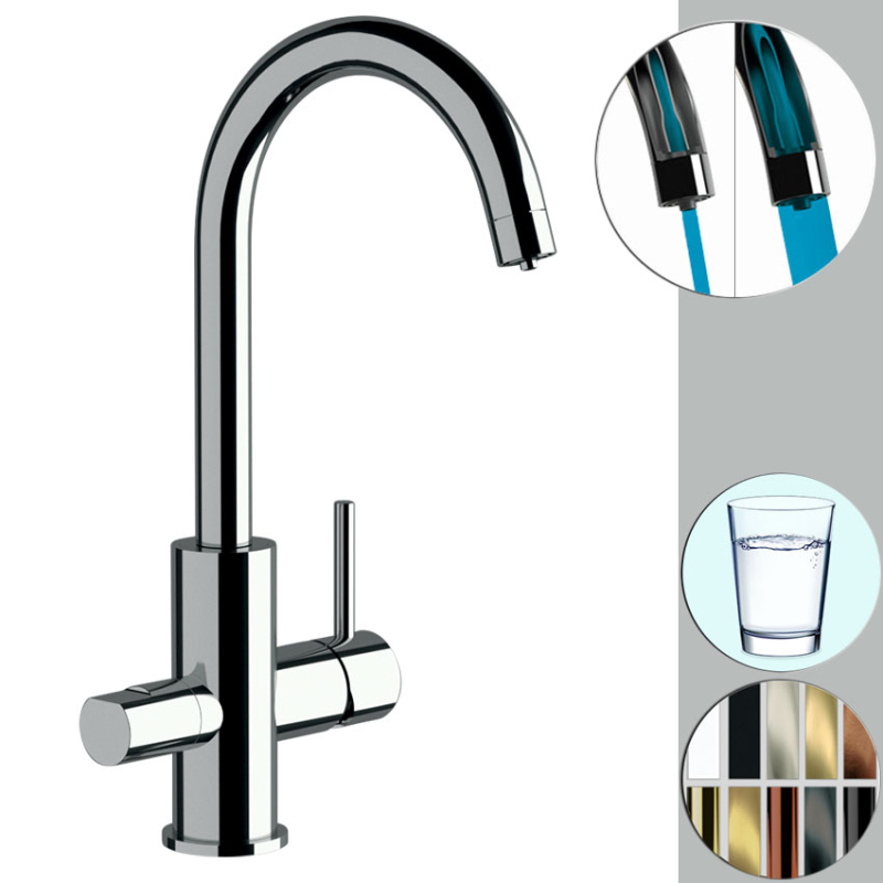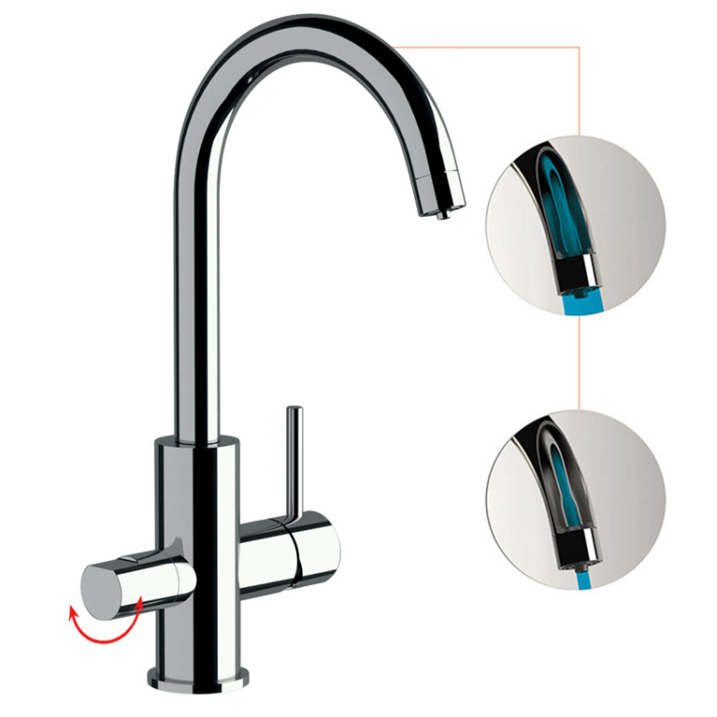 Bateria este prevăzută cu trasee separate pentru apa filtrată, fără amestec cu apa din rețea.
