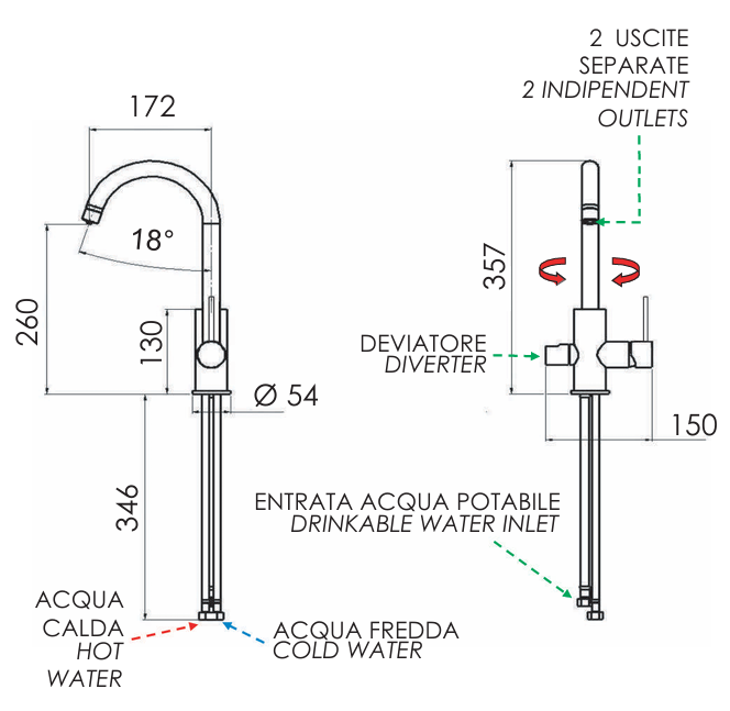 - pipă pivotantă la 360 grade pentru flexibilitate maximă în utilizare