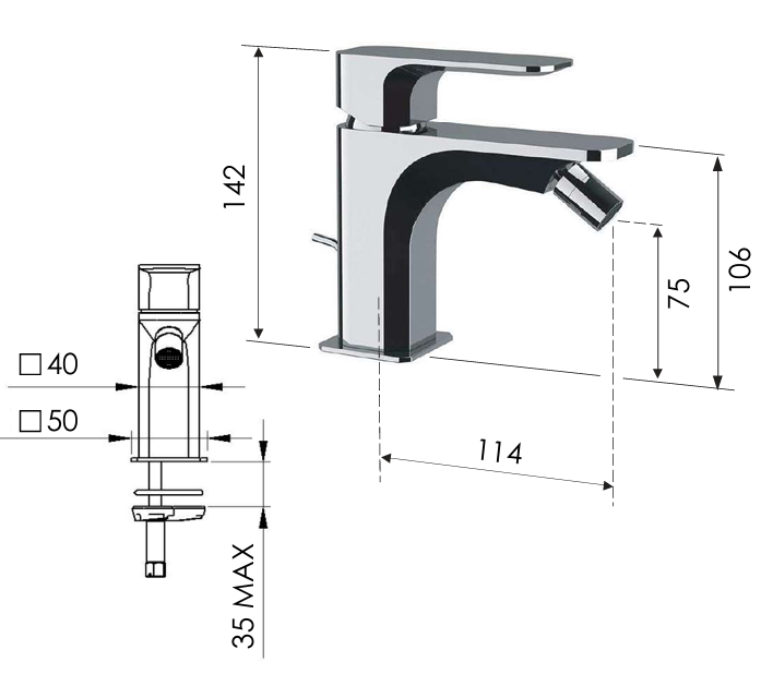 Compatibilitate și condiții de montare: conexiune standard G 3/8; montaj pe bideu cu o singură gaură; compatibil cu sistemele de alimentare cu presiune standard. Recomandări de îngrijire și siguranță: curățați exclusiv cu o cârpă moale și apă cu săpun neutru; nu utilizați produse chimice agresive sau abrazive; după instalare verificați etanșeitatea racordurilor.
