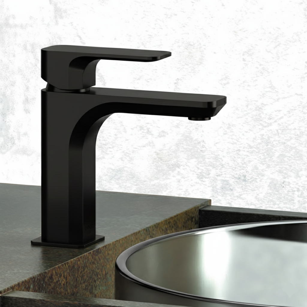 Bateria de lavoar din colecția Tiara se remarcă printr-un design minimalist și elegant, definit de linii cilindrice fluide care se integrează perfect în orice baie modernă. Finisajul negru mat oferă produsului un aspect contemporan și sofisticat, fiind în același timp extrem de plăcut la atingere și rezistent la utilizarea zilnică. Corpul compact și pipa ergonomică sunt proiectate pentru a oferi un confort maxim în utilizare, prevenind stropirea accidentală a suprafețelor din jur. Calitatea materialelor garantează o durabilitate extinsă, în timp ce cartușul ceramic performant asigură o reglare lină și precisă a temperaturii și a debitului de apă.