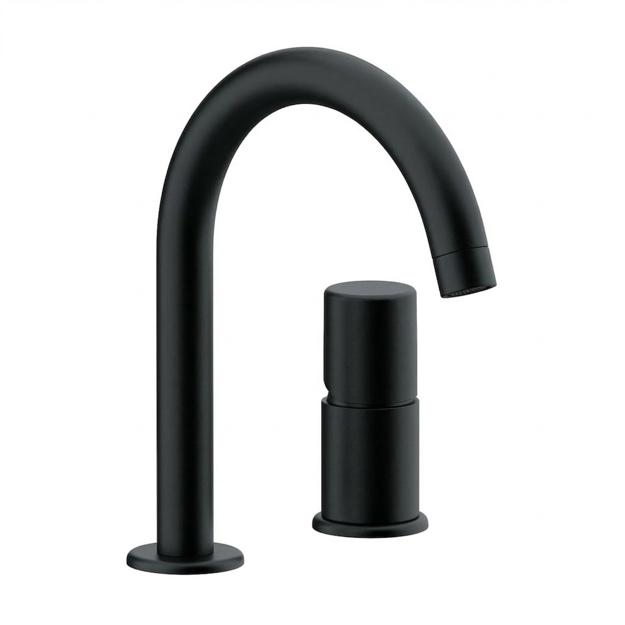 Bateria de lavoar încastrată din colecția Trilogy se distinge printr-un design minimalist format din două elemente separate, oferind o estetică rafinată băilor moderne. Construcția sa modulară permite poziționarea personalizată a pârghiei de comandă față de pipă, asigurând o flexibilitate sporită în amenajare. Pipa cu lungime de 175 mm este proiectată pentru a oferi un jet de apă optim, în timp ce montajul ascuns elimină elementele vizibile inutile, facilitând curățarea suprafețelor. Finisajul negru mat conferă produsului un aspect sobru și contemporan, fiind extrem de rezistent la utilizarea zilnică.