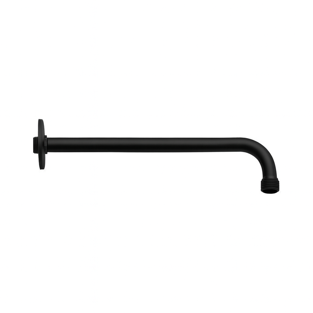 Brațul de duș de perete rotund Daniel cu lungimea de 40 cm și finisaj negru mat, este conceput pentru racordarea solidă şi estetică a capului de duș superior la sistemul de alimentare cu apă. Produsul este realizat din alamă cu un finisaj protector, rezistent la umiditate și solicitări mecanice, ceea ce extinde durata de viață și menține un aspect plăcut. Racordul standard filetat 1/2" permite utilizarea cu majoritatea capetelor de duș. Forma rotundă și lungimea optimă asigură o poziționare confortabilă a capului de duș în zona de duș.