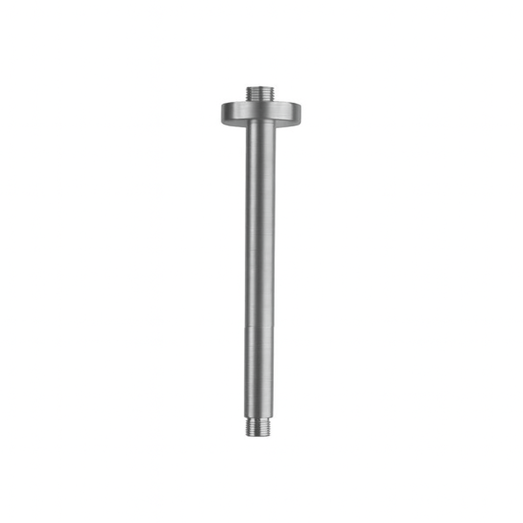 Brațul de tavan rotund DANIEL, cu lungimea de 500 mm și finisaj visual inox, este conceput pentru montarea para de duș fixă pe tavan. Asigură o poziționare înaltă și stabilă a dușului, oferind un jet perpendicular pentru o utilizare confortabilă. Construcția din alamă și finisajul tip inox periat asigură rezistență la coroziune și integrare estetică în băile moderne. Conexiunea standard G1/2" permite compatibilitate cu majoritatea capetelor de duș.