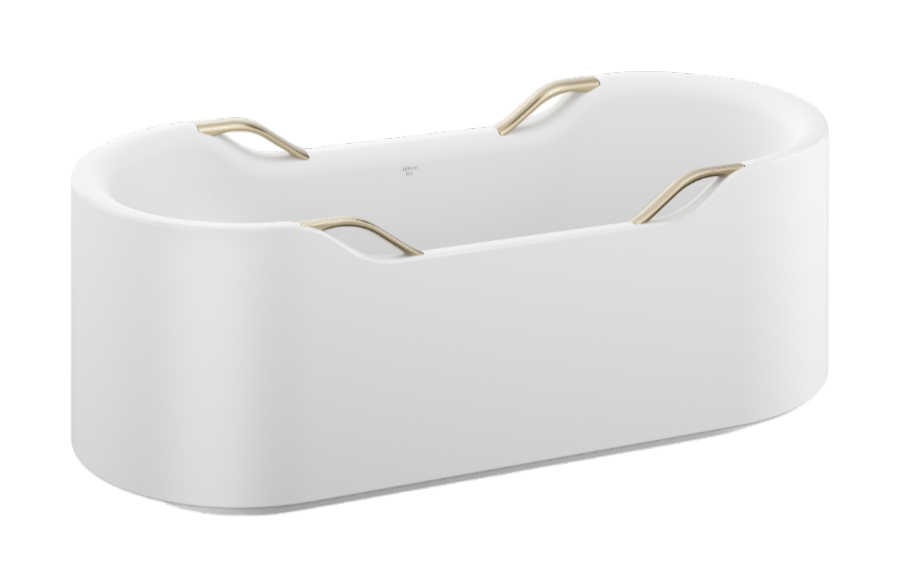 Transformă baia într-un sanctuar de stil și rafinament cu cada freestanding ARMANI_BAIA, piesa de rezistență a oricărui spațiu de baie premium. Designul său oval, cu linii sinuoase și finisaj mat antiderapant, oferă o experiență de relaxare incomparabilă, completată de cele 4 mânere metalice decorative în finisaj greige, integrate perfect pentru siguranță și acces facil.