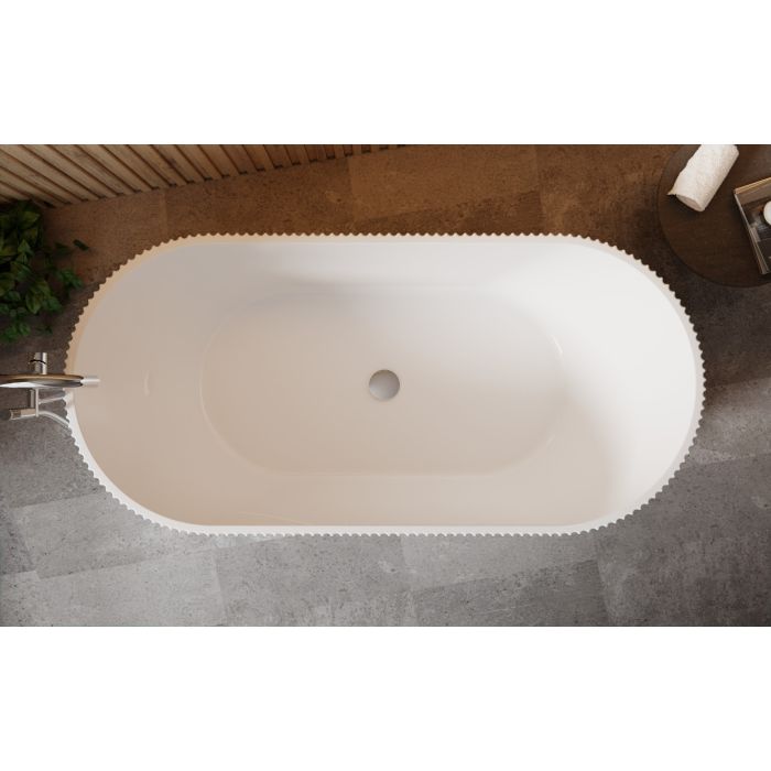 Cada freestanding din acril sanitar 100 % de înaltă calitate, parte a seriei Giuliana, cu dimensiunile 1700 × 800 mm. Volum generos de aproximativ 290 l, concepută pentru instalare liberă în spaţiul băii, oferind o formă ovală elegantă şi finisaj lucios. Include sistem de scurgere click‑clack şi preaplin integrat, picioare reglabile pentru nivelare pe suprafeţe denivelate, suprafaţă netedă şi termoisolantă ce păstrează căldura apei.
