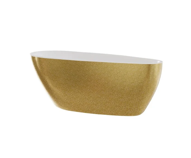 Cadă freestanding din seria GOYA, cu dimensiunile 160 × 70 cm, fabricată din materialul Mineral DuraBe — un compozit de tip piatră care oferă o suprafaţă netedă, neporoasă, izolaţie termică bună şi durabilitate. Modelul include picioare reglabile, sifon click‑clack în finisaj auriu şi este destinat instalării libere, fără sprijin de perete.