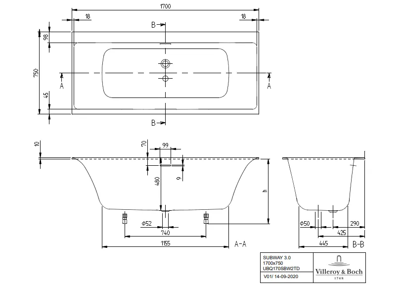 Cada rectangulară Subway 3.0 de 170x75 cm este proiectată pentru instalare în mod încorporat, oferind o soluție elegantă pentru băi moderne. Corpul din material Quaryl® combină rezistență mecanică, izolare termică și o suprafață netedă, neporoasă, ușor de întreținut. Dimensiunile 1700x750x480 mm sunt adecvate pentru două persoane, iar capacitatea de 258 l asigură volum suficient de apă.