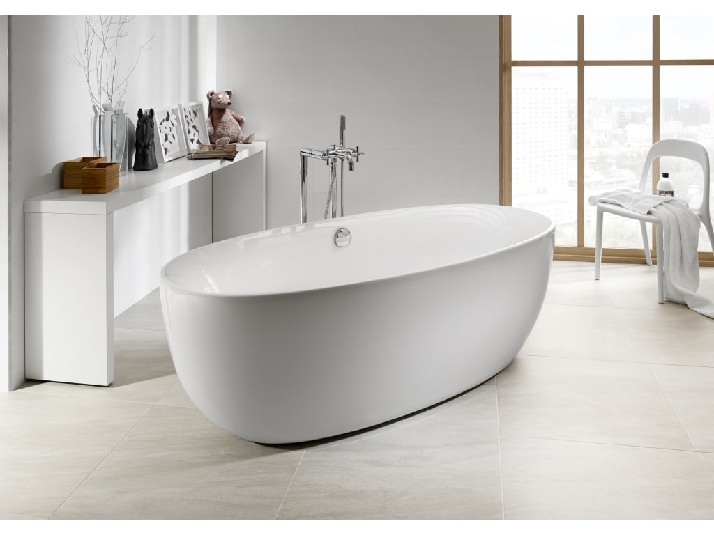 Cada freestanding Virginia, cu formă ovală, este destinată pentru utilizarea unei persoane și oferă posibilitatea instalării universale, fie în centru, fie lângă perete. Fabricată din acril sanitar de înaltă calitate, asigură suprafață netedă, ușor de curățat și rezistentă la decolorare. Dimensiuni: 1 700x800x560 mm, greutate 31 kg, diametru scurgere 52 mm. Sifonul și sistemul de preaplin sunt incluse, iar cada se sprijină pe picioare integrate.