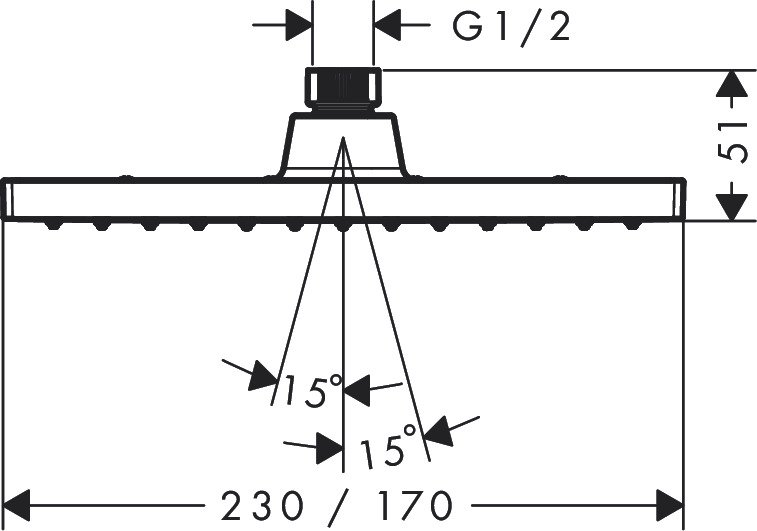 Capul de duş de tavan/stână Hansgrohe Vernis Shape 230 1jet este proiectat pentru a oferi un jet uniform Rain, confortabil pentru întregul corp. Dimensiunea duşului de 230×170 mm asigură un flux larg, cu un debit minim de 5,2 l/min şi până la 12,4 l/min la 3 bar, oferind un echilibru între confort şi economie de apă. Instalarea se poate face pe plafon sau perete, racordul este standard G1/2, discul este din plastic, iar unghiul jetului poate fi ajustat printr-o articulatie reglabilă.