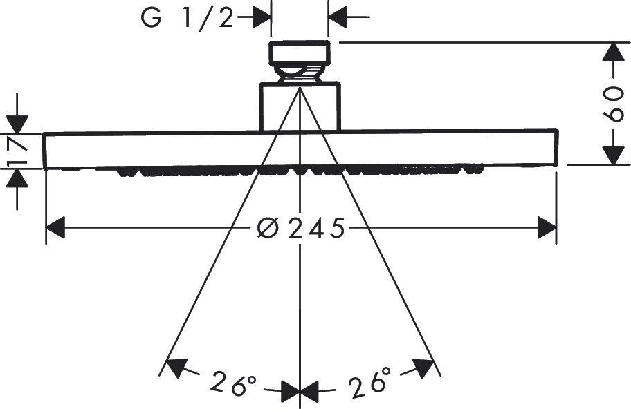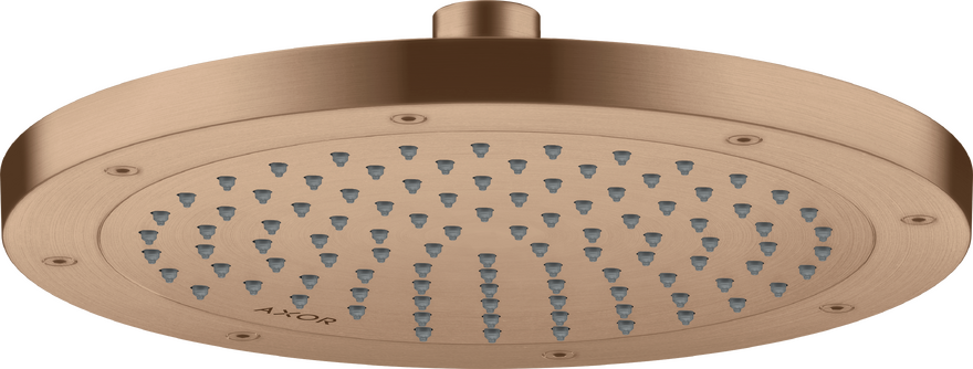 Capul de duș Axor round cu diametrul de 245 mm este conceput pentru distribuirea uniformă a apei și pentru crearea unei zone de duș confortabile cu jet de tip ploaie. Forma rotundă a suprafeței de pulverizare asigură o acoperire constantă a corpului cu apă, iar construcția este potrivită pentru montaj pe perete sau pe tavan. Capul de duș este prevăzut cu racord sferic, care permite reglarea unghiului de înclinare pentru orientarea precisă a jetului. Discul de pulverizare metalic este proiectat pentru utilizare îndelungată și facilitează întreținerea periodică.