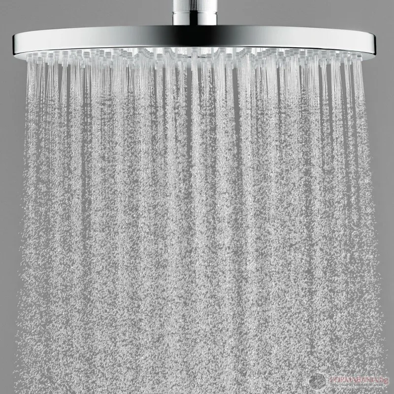 Cap de duş fix sau de tavan, rotund, cu diametrul de 240 mm — destinat montării într‑un sistem de duş cu racord standard. Discul pulverizator este din plastic, iar carcasa este cromată. Racordul filetat este G 1/2 (DN15), asigurând compatibilitate cu instalaţii standard. Jetul „Rain” oferă un debit uniform de apă, acoperind corpul larg. Montajul poate fi realizat pe perete sau pe tavan, iar unghiul duşului se poate regla prin articulaţie sferică.