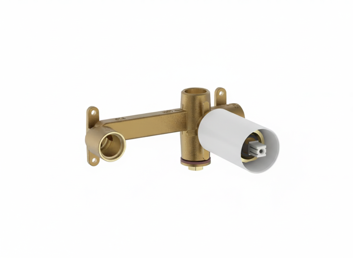 Corpul încastrat universal pentru colecția Ona reprezintă elementul tehnic esențial pentru instalarea sistemelor de lavoar cu dublă comandă pe perete. Această casetă tehnologică asigură o fixare rigidă și precisă în interiorul peretelui, facilitând conectarea la rețeaua de alimentare cu apă. Structura sa robustă protejează mecanismele interne și permite o întreținere facilă prin accesul direct sub placa decorativă. Elementele de finisaj alb mat incluse asigură continuitatea estetică și o etanșare perfectă cu setul extern al bateriei, garantând o funcționare silențioasă și sigură.