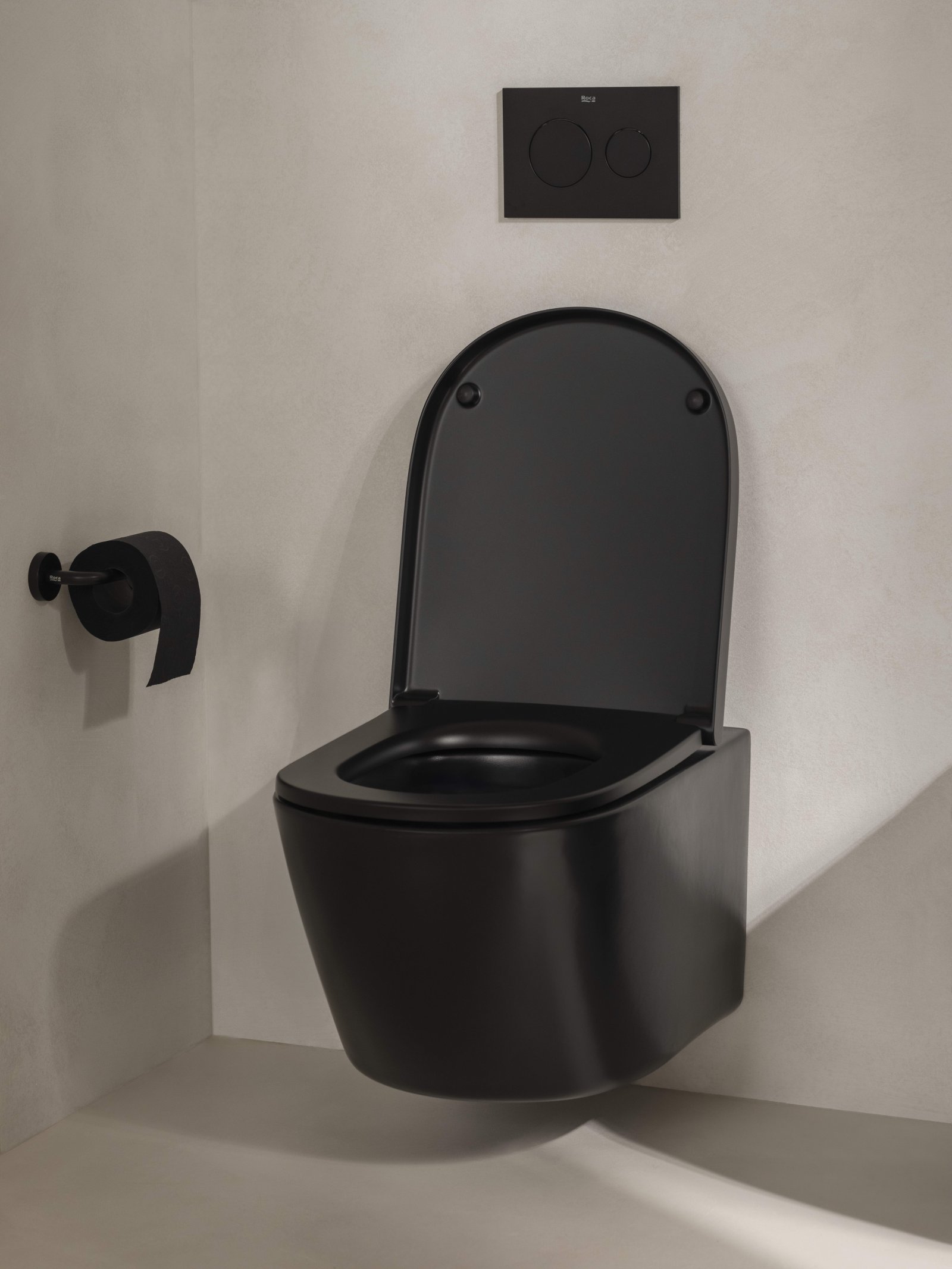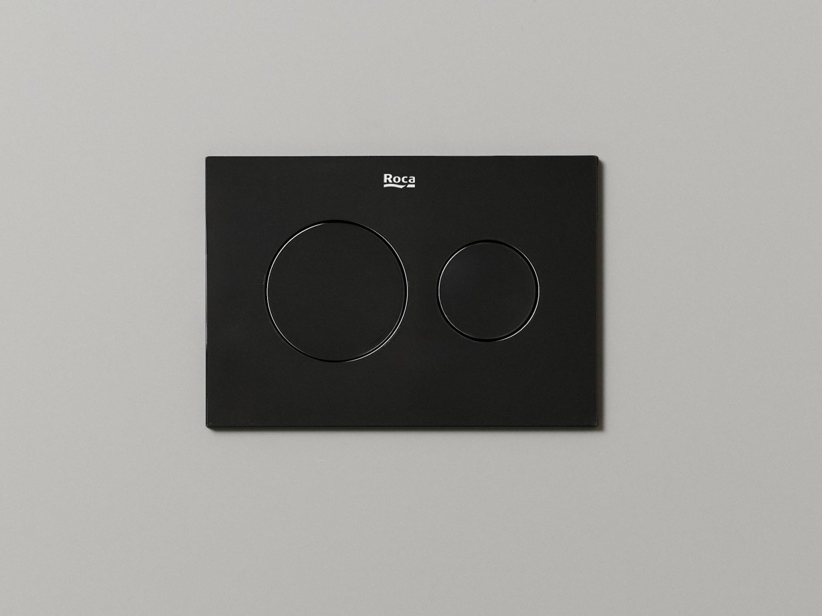 Clapeta de acționare Roca PS3 Duplo S cu finisaj negru mat este un element de design modern, conceput pentru a completa estetic băile contemporane dotate cu sisteme de spălare încastrate. Suprafața mată nu doar conferă un aspect vizual premium, ci este și practică, fiind rezistentă la amprente și reflexii deranjante. Designul cu două butoane rotunde oferă un control intuitiv asupra fluxului de apă, permițând utilizatorului să opteze pentru o clătire completă sau parțială. Fabricată din ABS rezistent, clapeta asigură o funcționare fiabilă și o durabilitate ridicată în timp.