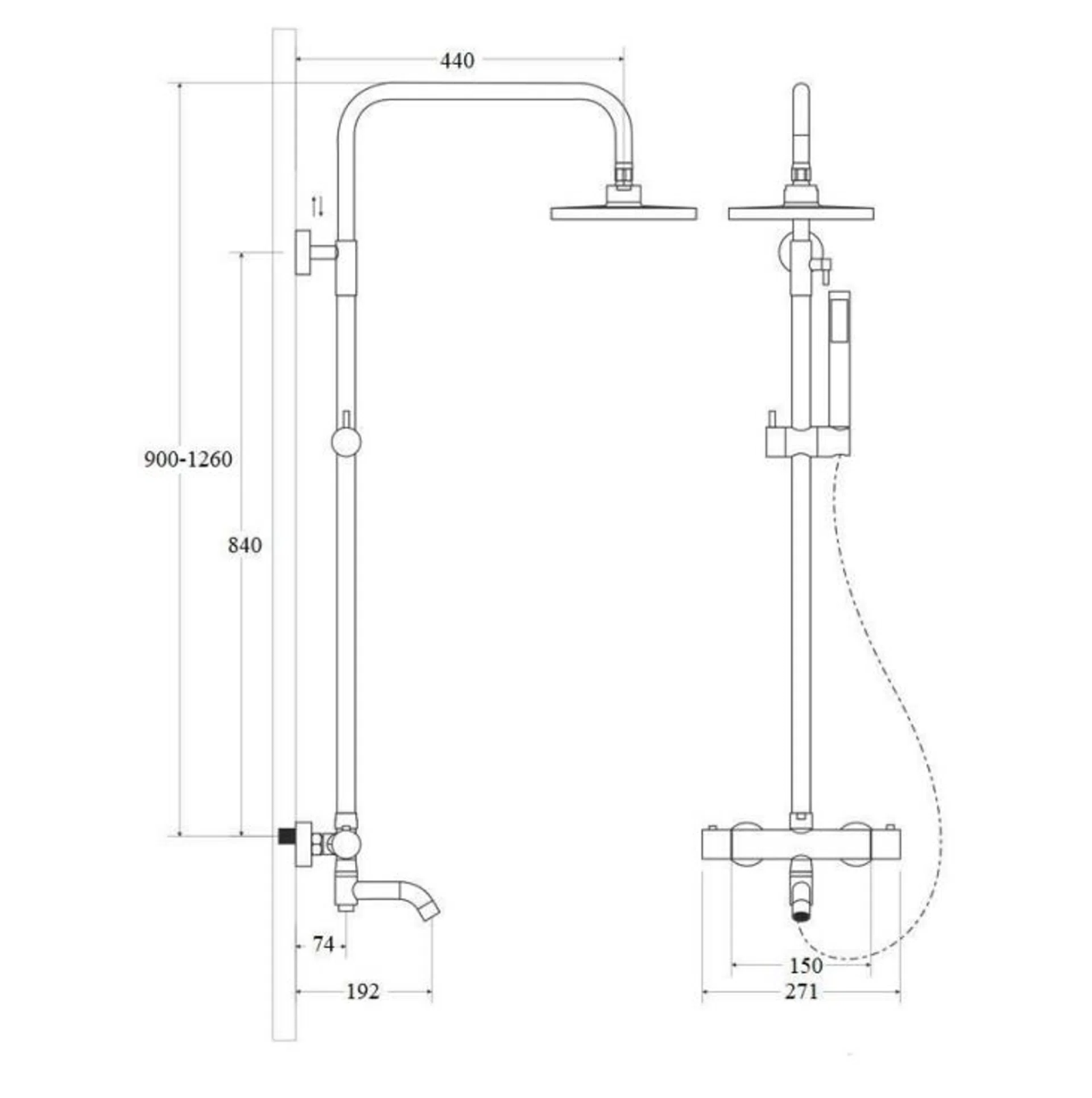 - Duș fix reglabil, cu diametru de 20–25 cm.