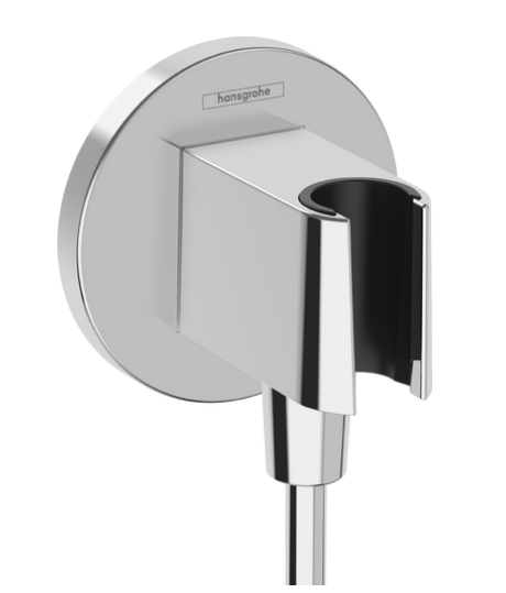 Racordul de perete cu suport pentru duș Hansgrohe FixFit S, oferă o soluție completă de conectare a furtunului de duș cu un suport integrat pentru para de duș. Carcasa este realizată din plastic durabil cu canal intern pentru apă, facilitând un montaj simplu și utilizare fiabilă. Suportul fix integrat asigură poziționarea stabilă a capului de duș manual, iar supapa de sens unic integrată previne refluxul apei în sistem.