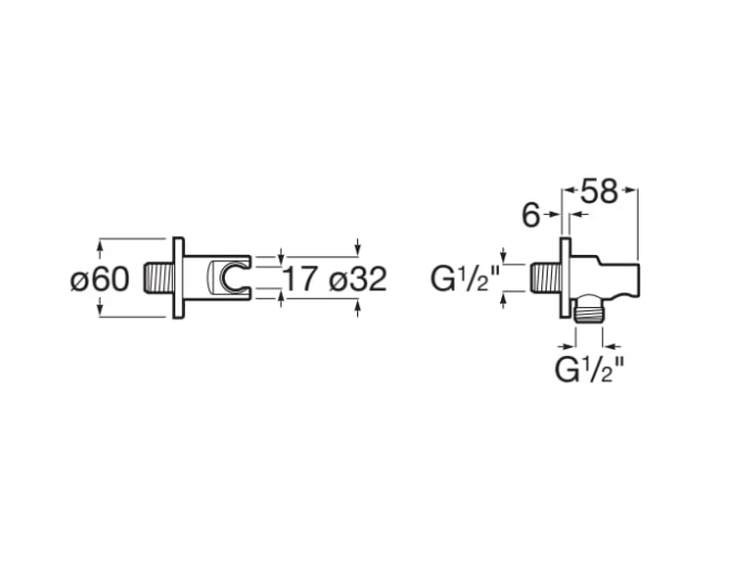 - Funcţie dublă — racord furtun + suport para de duş într‑un singur element