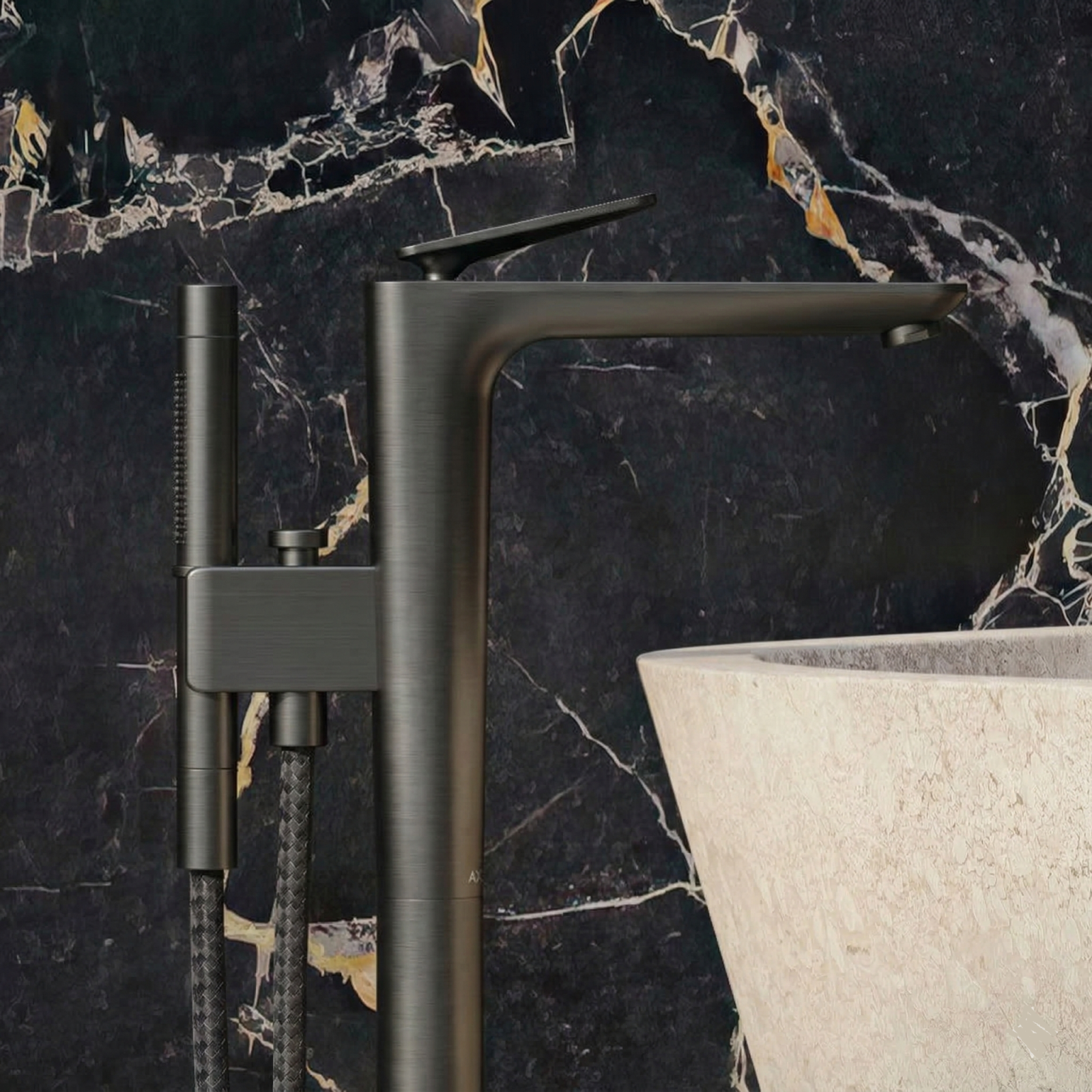 Baterie Axor CITTERIO C montaj podea, brushed black chrome