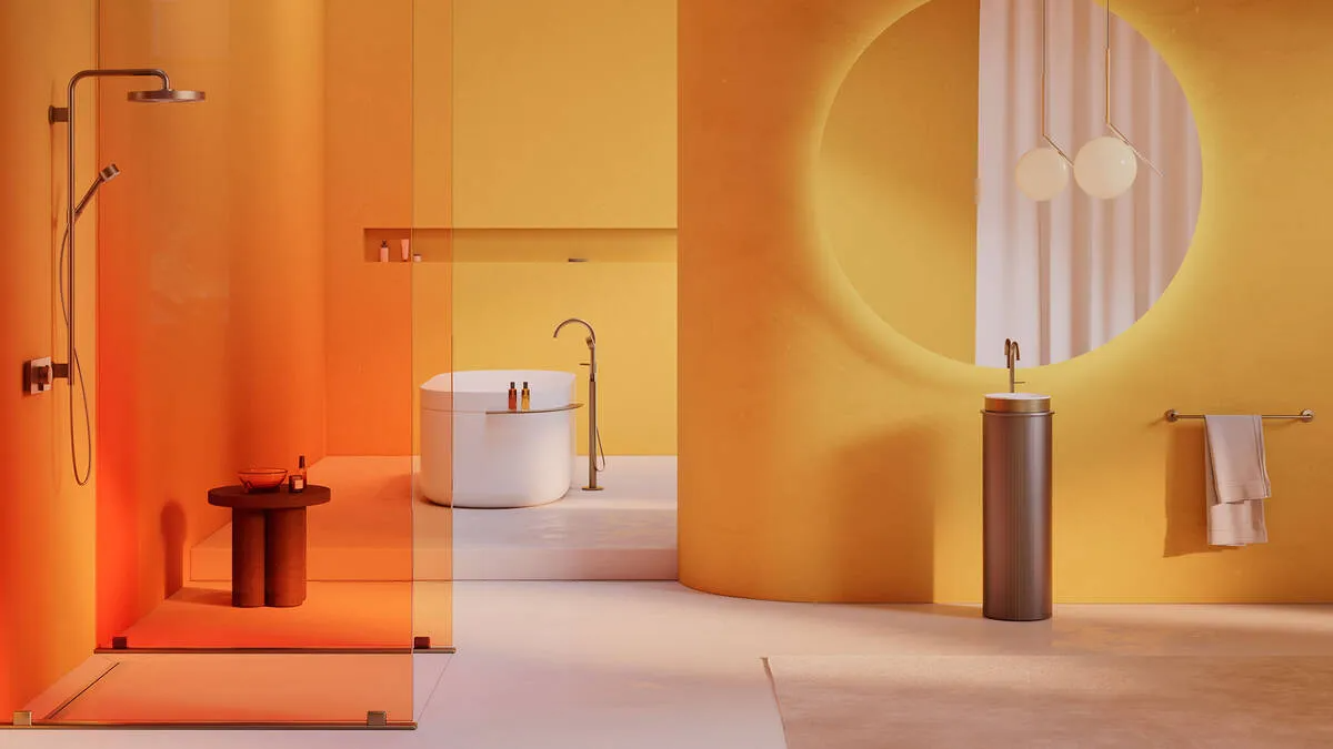 Bateria de cadă freestanding din colecția Axor One redefinește minimalismul prin forme radicale și o funcționalitate intuitivă. Designul său monolitic, creat de Barber Osgerby, elimină elementele inutile, lăsând loc unei estetici pure care se integrează perfect în băile de lux. Tehnologia Select permite controlul facil al apei, în timp ce pipa curbată oferă un jet clar și precis, ideal pentru căzile de sine stătătoare. Finisajul Brushed Red Gold, realizat prin tehnologia avansată PVD Axor FinishPlus, oferă o profunzime cromatică excepțională și o rezistență extremă la zgârieturi și agenți de curățare.