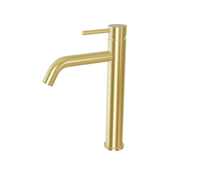 Bateria de lavoar înaltă din colecția Veo reprezintă o fuziune între estetica modernă și performanța tehnică, fiind concepută special pentru lavoarele de tip bol montate pe blat. Corpul robust din alamă de înaltă calitate asigură o durabilitate extinsă, în timp ce cartușul ceramic Kerox garantează o operare fluidă și precisă a mânerului monocomandă. Finisajul aur slefuit oferă produsului un aspect industrial sofisticat, având totodată o rezistență sporită la pete și amprente. Designul ergonomic, cu o înălțime de 296 mm, permite o utilizare confortabilă și un acces facil la jetul de apă.