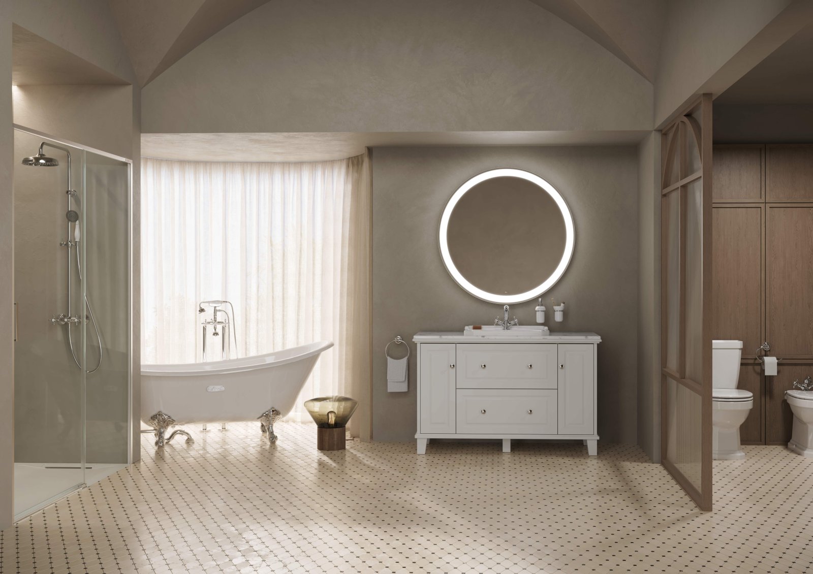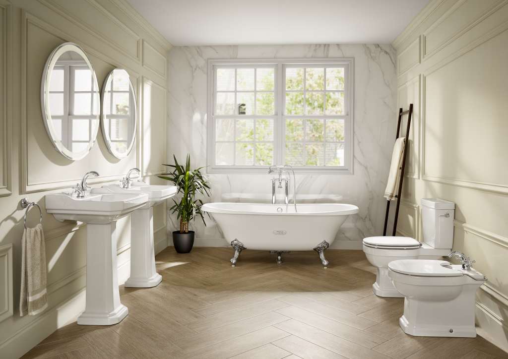 Bateria de cadă freestanding din colecția Carmen este un omagiu adus eleganței clasice, reinterpretând designul vintage prin tehnologii moderne. Montajul pe pardoseală o transformă într-un element decorativ dominant, ideal pentru completarea căzilor de sine stătătoare cu linii retro. Cele două manere sub formă de stea permit o reglare precisă și separată a apei calde și reci, oferind o experiență autentică de utilizare. Tehnologia Evershine garantează un finisaj cromat strălucitor și durabil, rezistent la pete și zgârieturi, menținând aspectul estetic impecabil pentru o perioadă îndelungată.