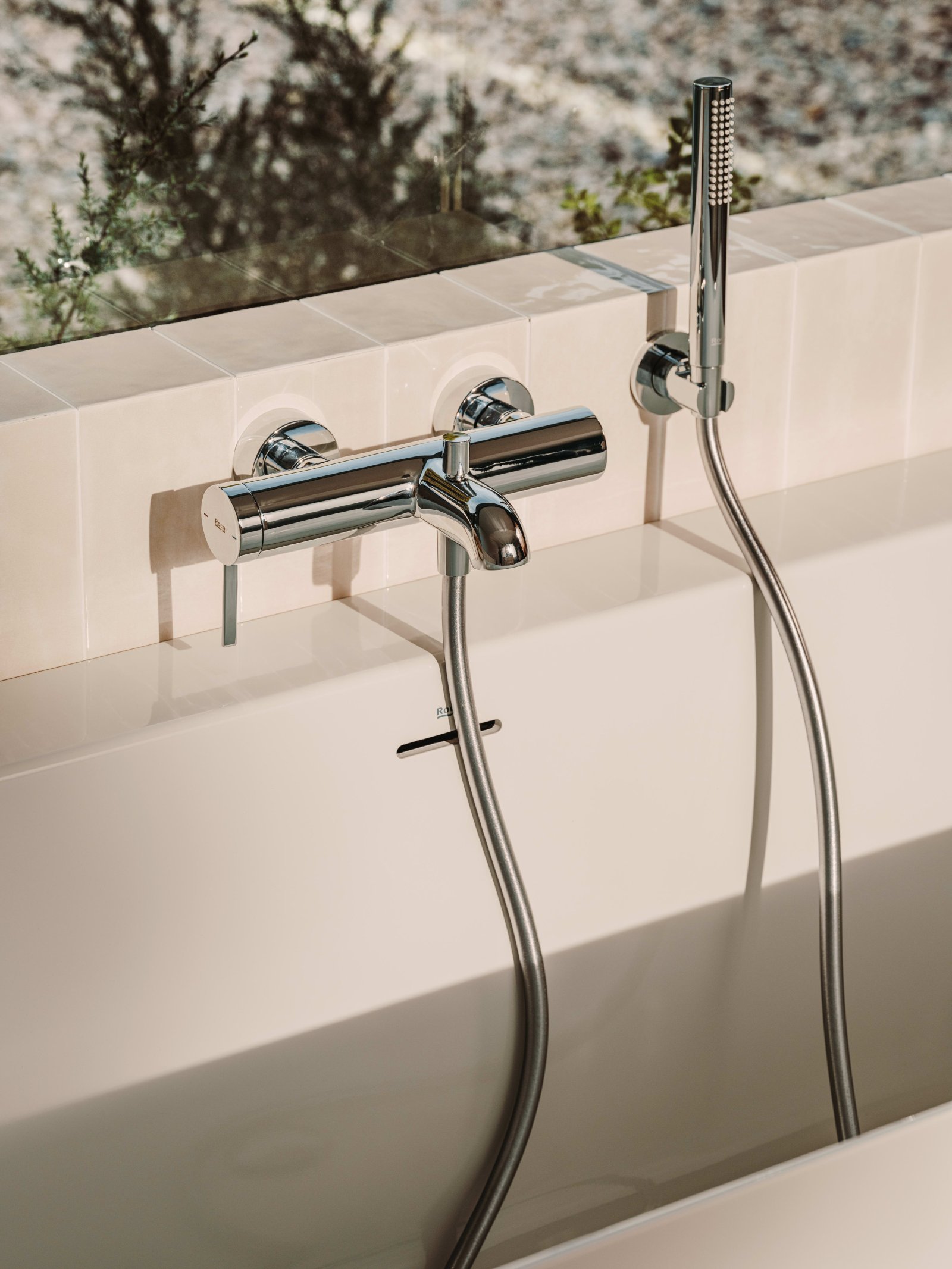 Bateria monocomandă pentru cadă din colecția Ona, în finisaj negru lucios, reprezintă o fuziune între designul organic și estetica modernă. Liniile sale fluide și maneta ergonomică subțire asigură o utilizare confortabilă și o reglare precisă a fluxului de apă. Suprafața cu finisaj Everlux oferă o strălucire intensă și o durabilitate superioară, protejând corpul din alamă împotriva coroziunii și a zgârieturilor. Divertorul automat permite comutarea facilă între pipa de umplere a căzii și funcția de duș, asigurând o funcționalitate optimă în utilizarea zilnică.